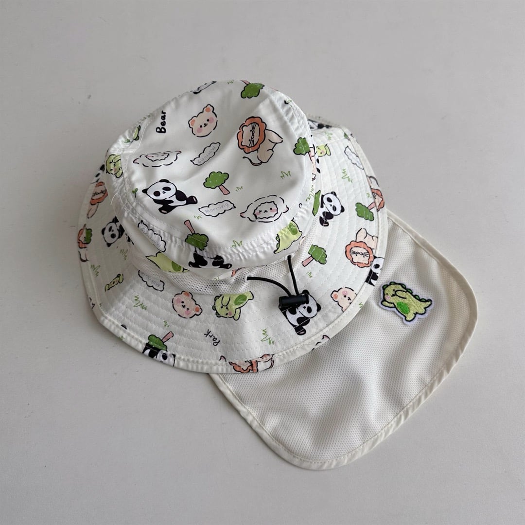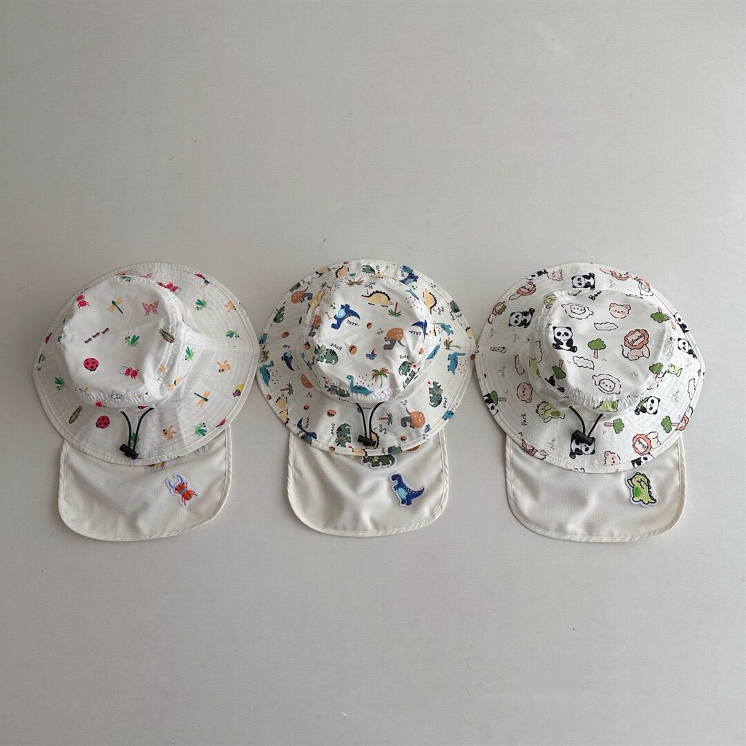 ,幼児キッズ男の子昆虫恐竜動物園たれ付き帽子 バスケットハット アウトドア UVカット 日よけ あご紐付き 吸汗速乾帽子 lwb0102