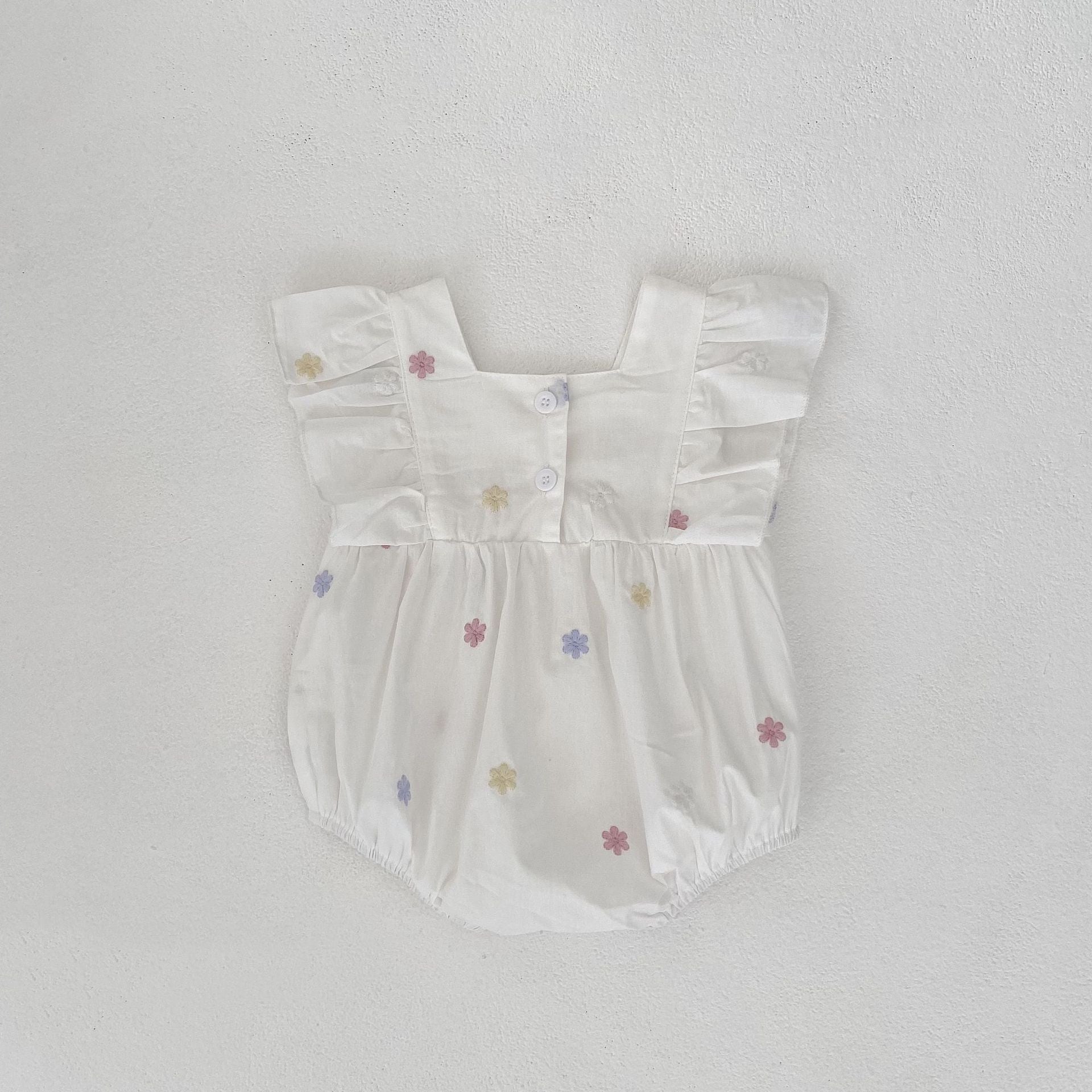 ホワイトカラーにパステルカラーの刺繡が施され、可愛さをさらに引き立てています。