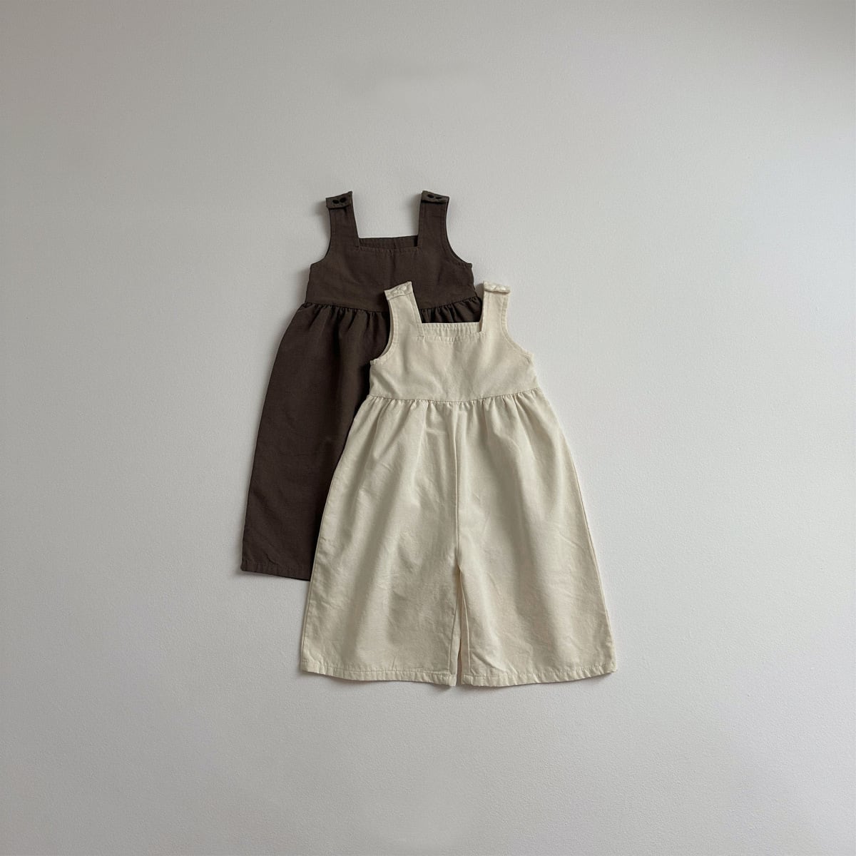 ,ベビー幼児100%綿ワイドサロペットパンツ 春秋冬キッズボトムス アイボリー ブラウン lwa0116
