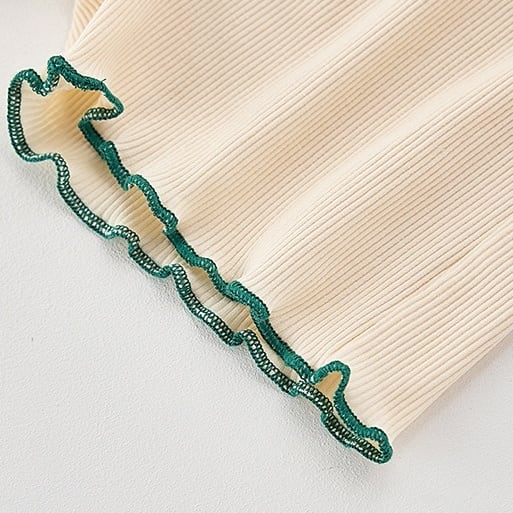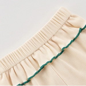 ,ベビー幼児女の子丸襟スカート付き半袖セットアップ かわいい夏服 フリル アイボリー ブルー バイカラー lwa0119