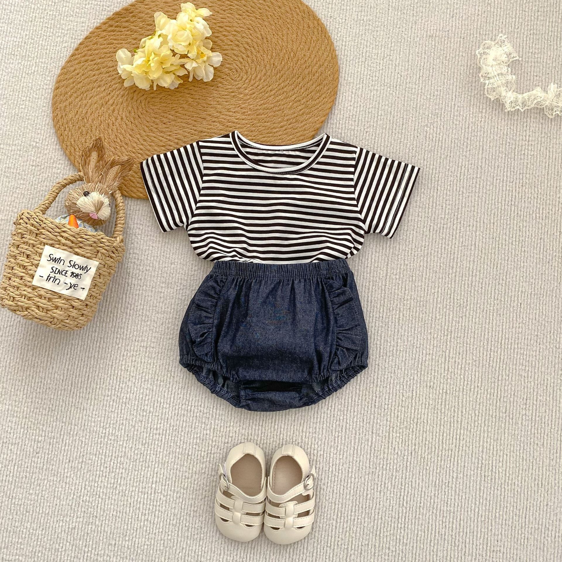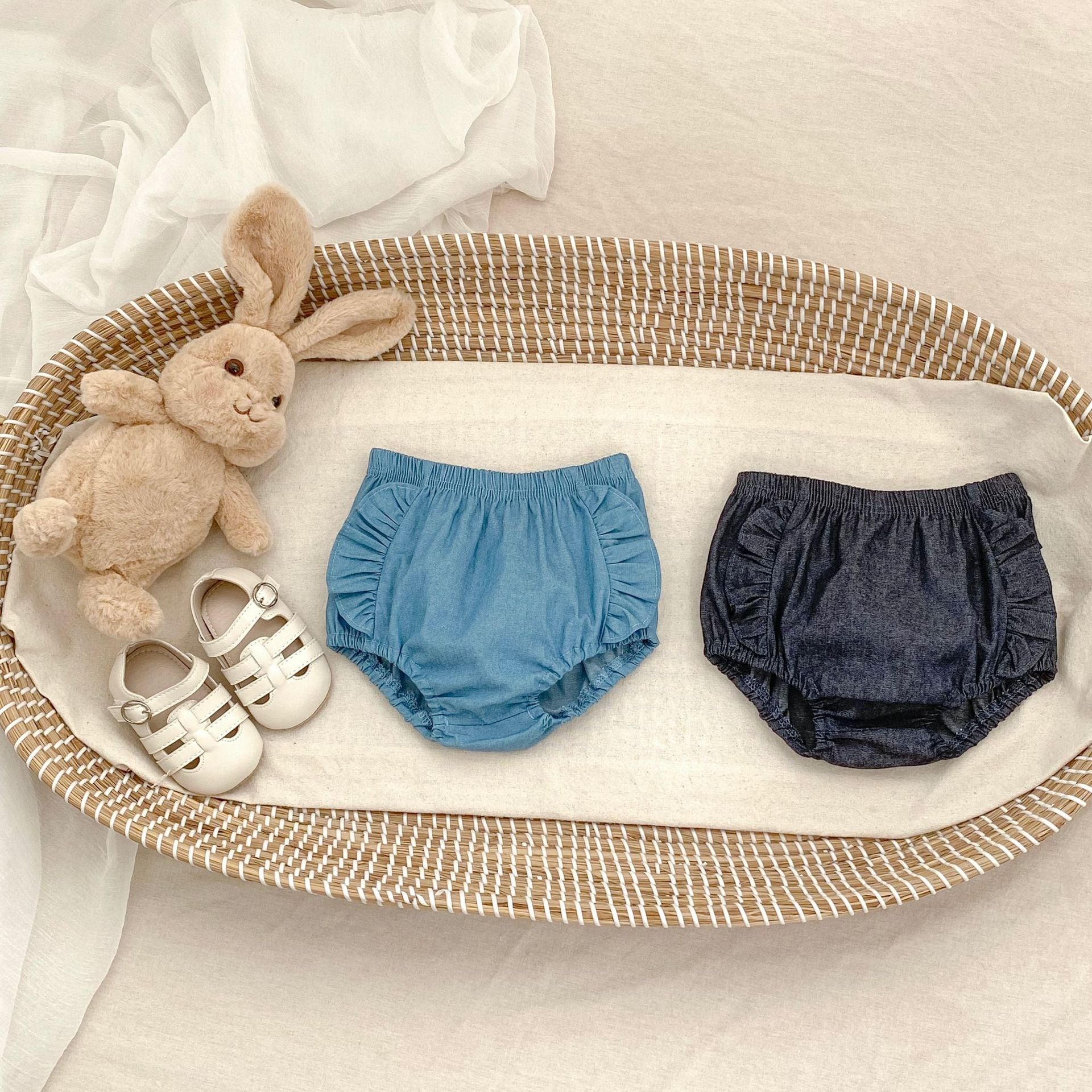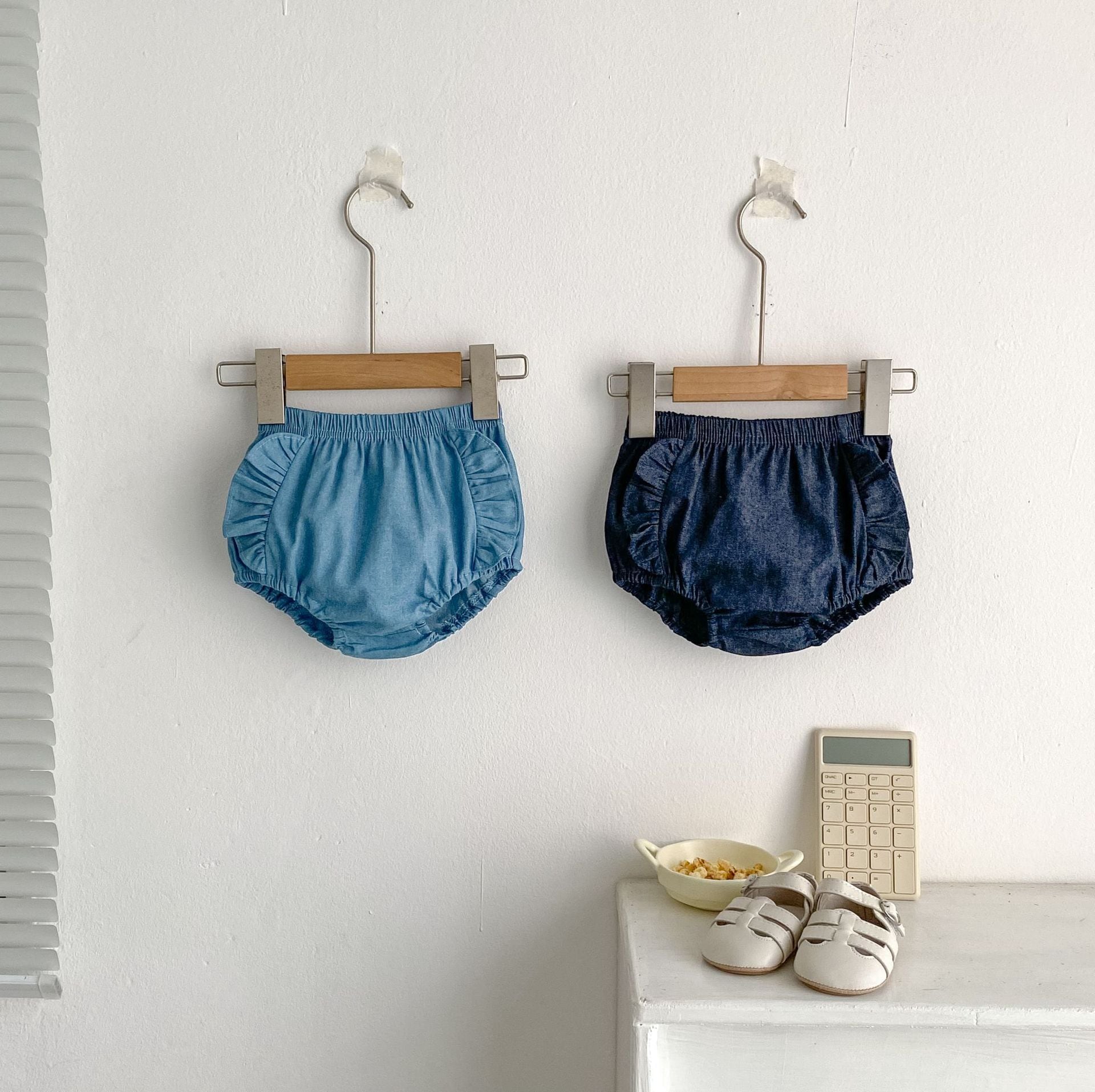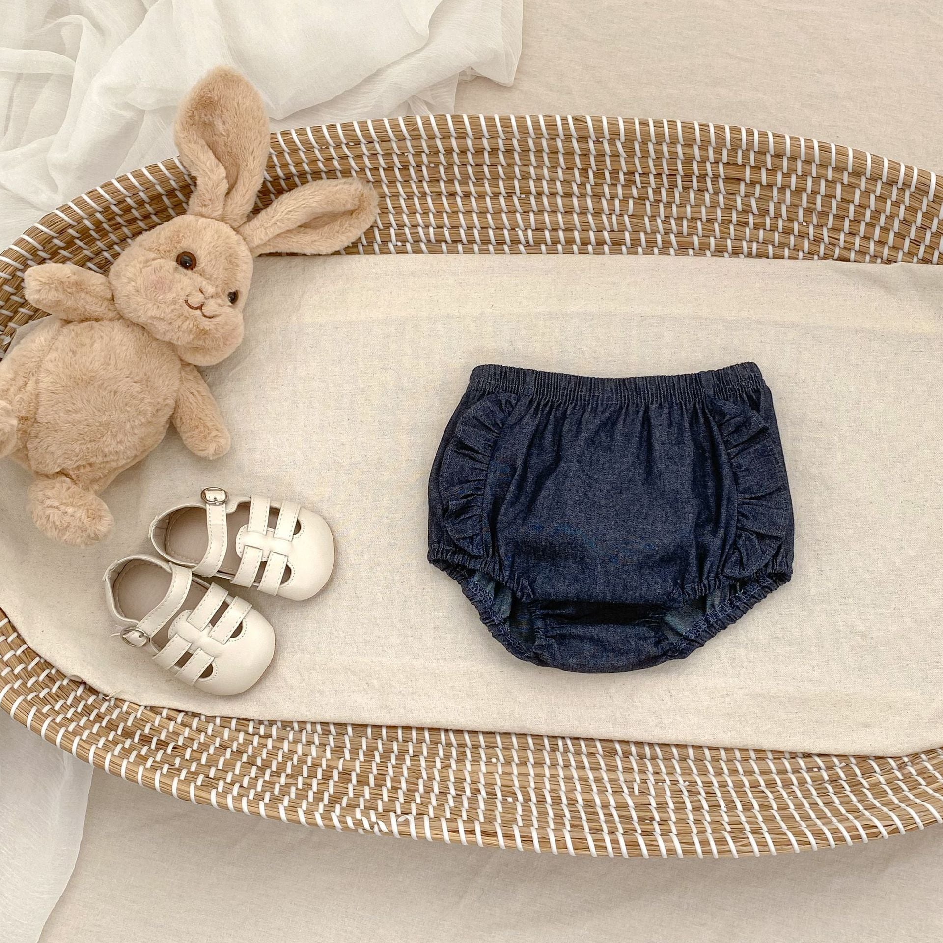 ,ベビー幼児女の子フリル付きデニムブルマパンツ 100%綿 韓国子供服 ブルー かわいい夏ボトムス lwa0124