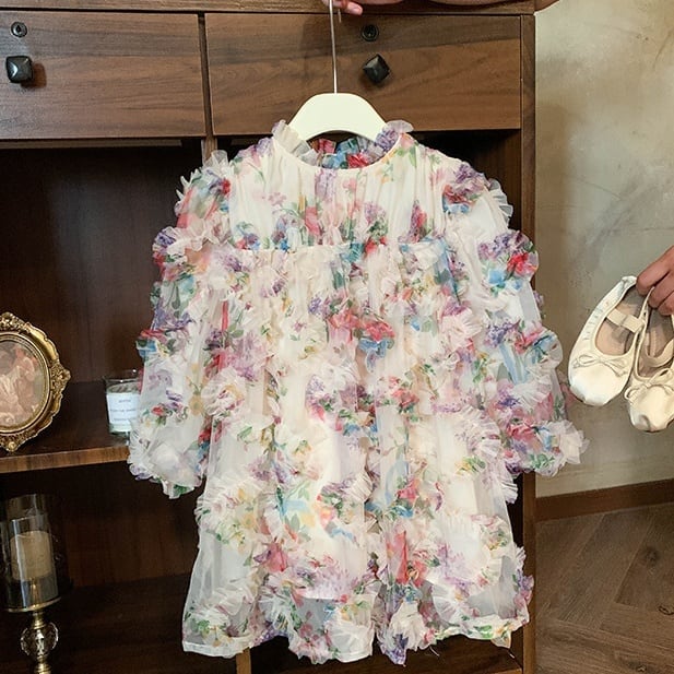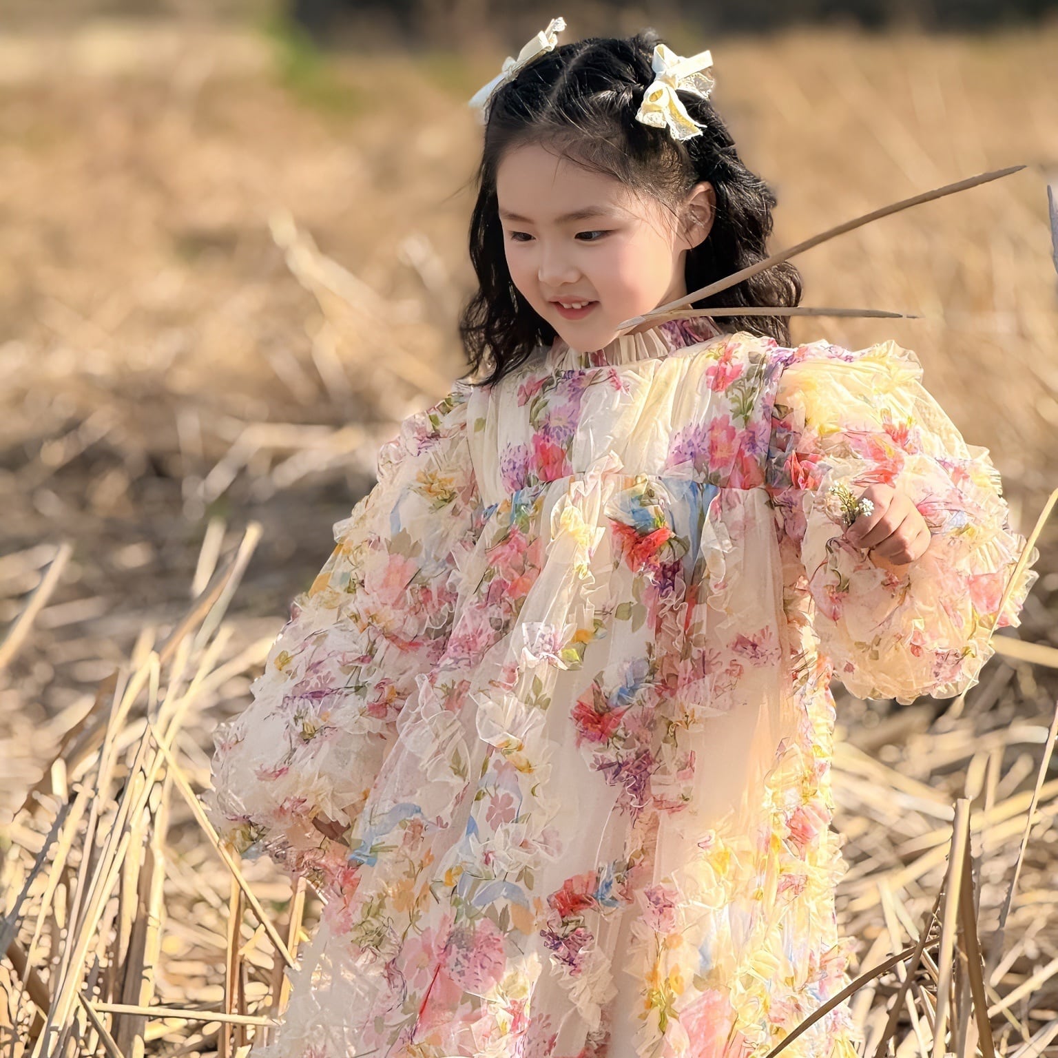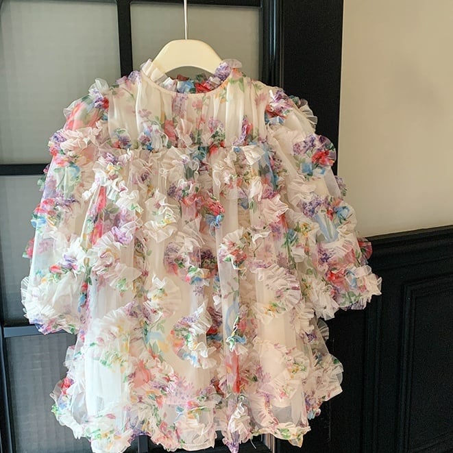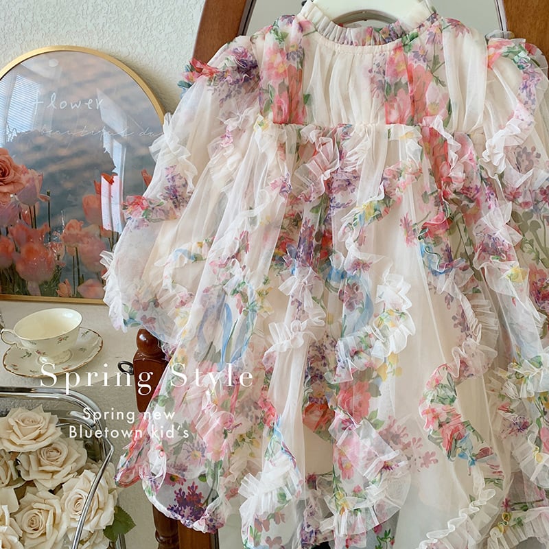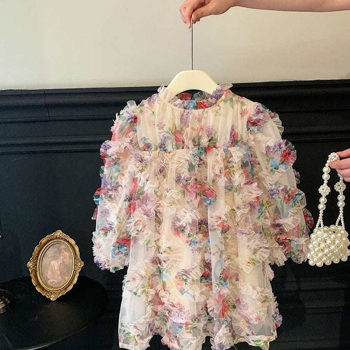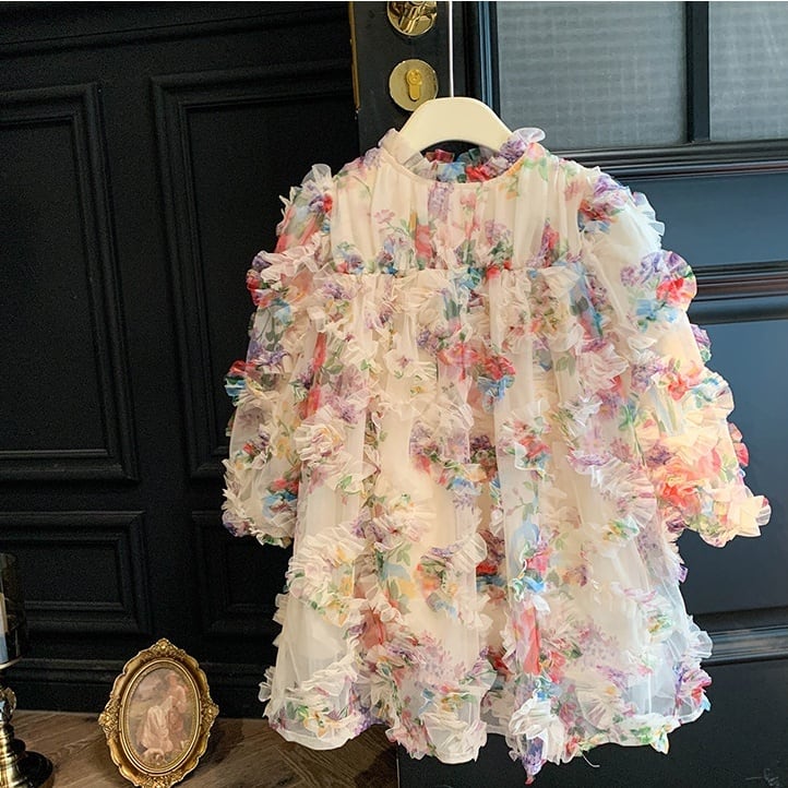 ,キッズ女の子花柄ふんわりチュールドレスワンピース 春秋冬子供服 結婚式 発表会 お呼ばれ lwk0109