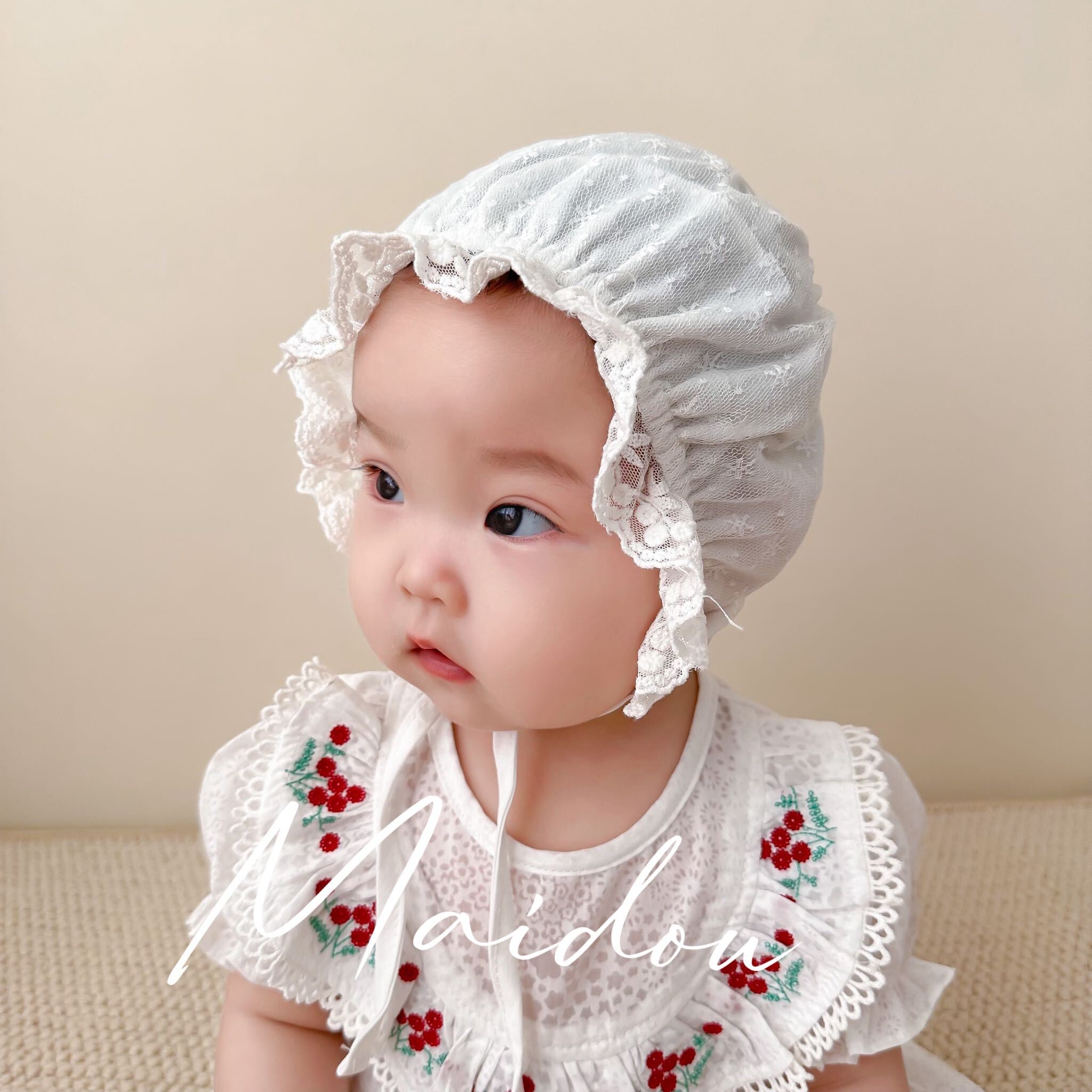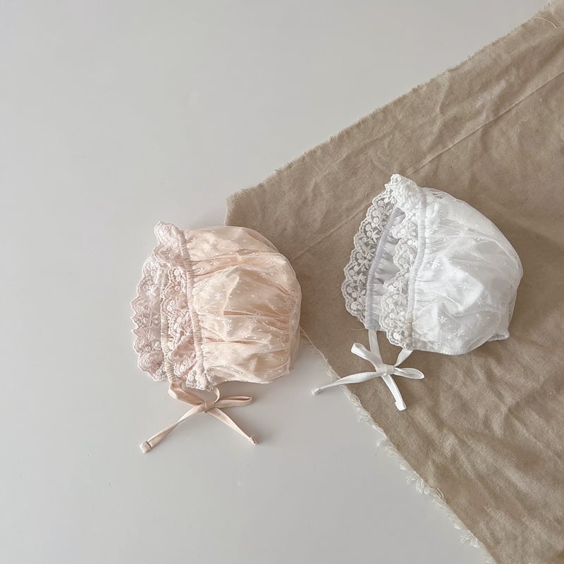 ,ベビー女の子フリル付きボンネット 赤ちゃん帽子 出産祝い 日よけ ホワイト ピンク lwb0060