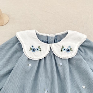 ,花刺繍襟の姉妹お揃いコーデュロイロンパース/ワンピース