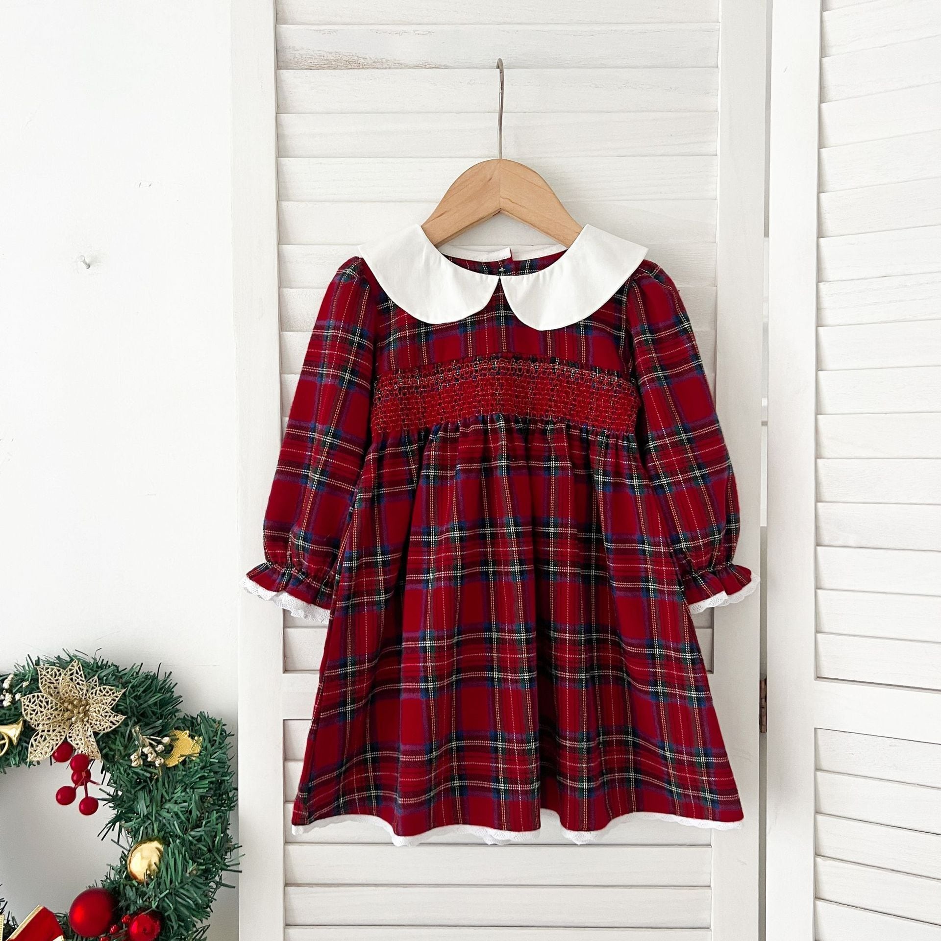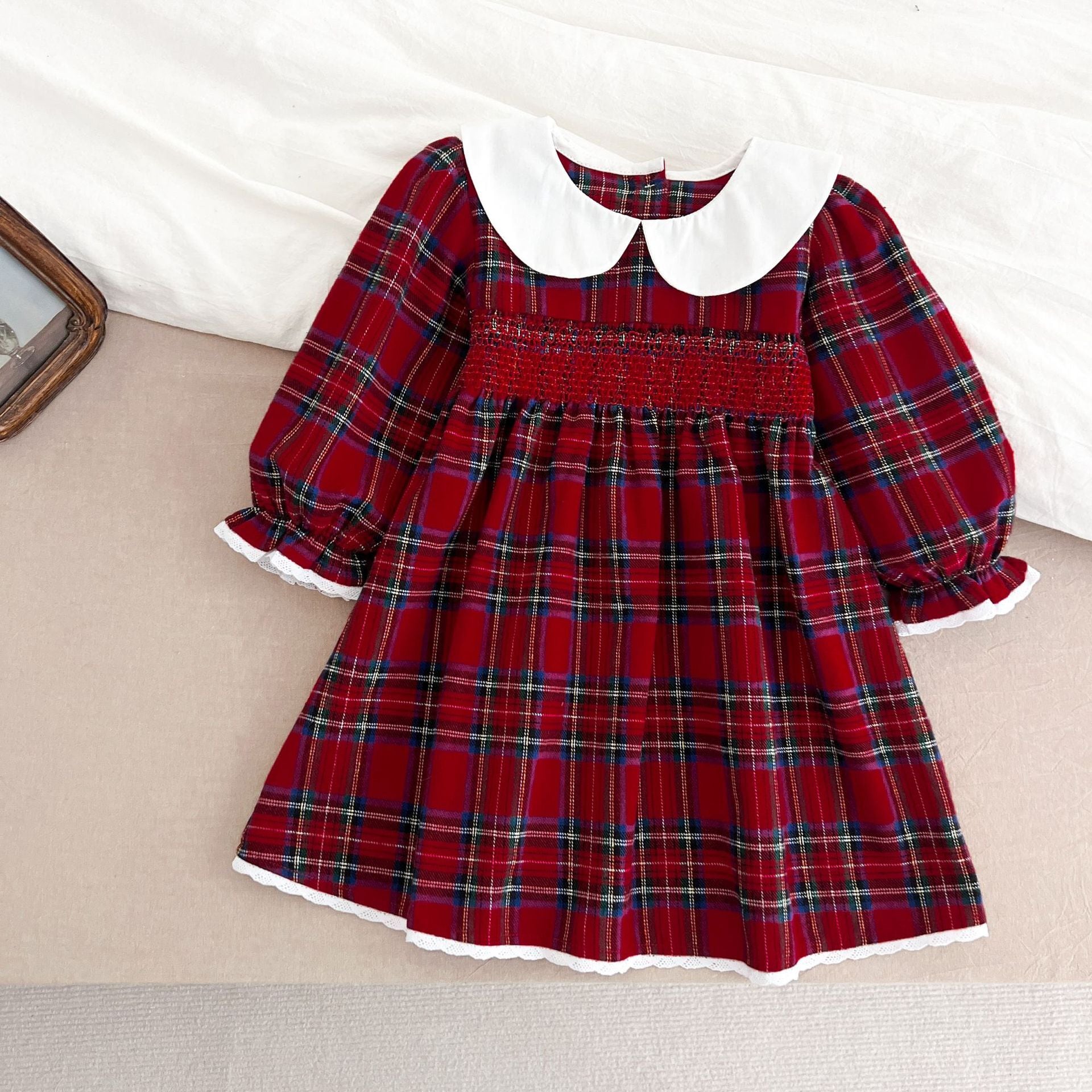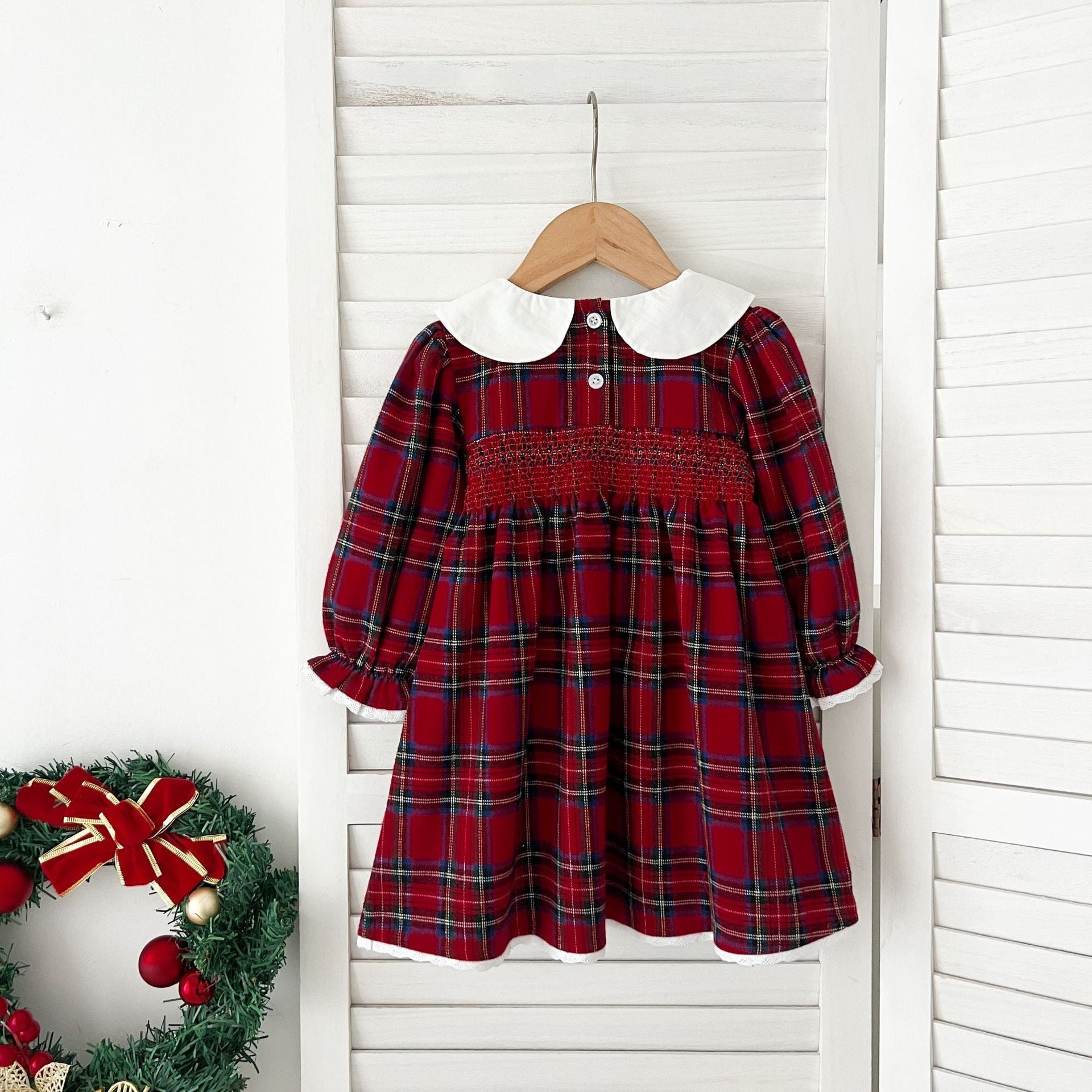 ,ベビーキッズ女の子クリスマスレッドチェック柄長袖ロンパースワンピース リンクコーデ 姉妹お揃い かわいい秋冬服 lwa0071