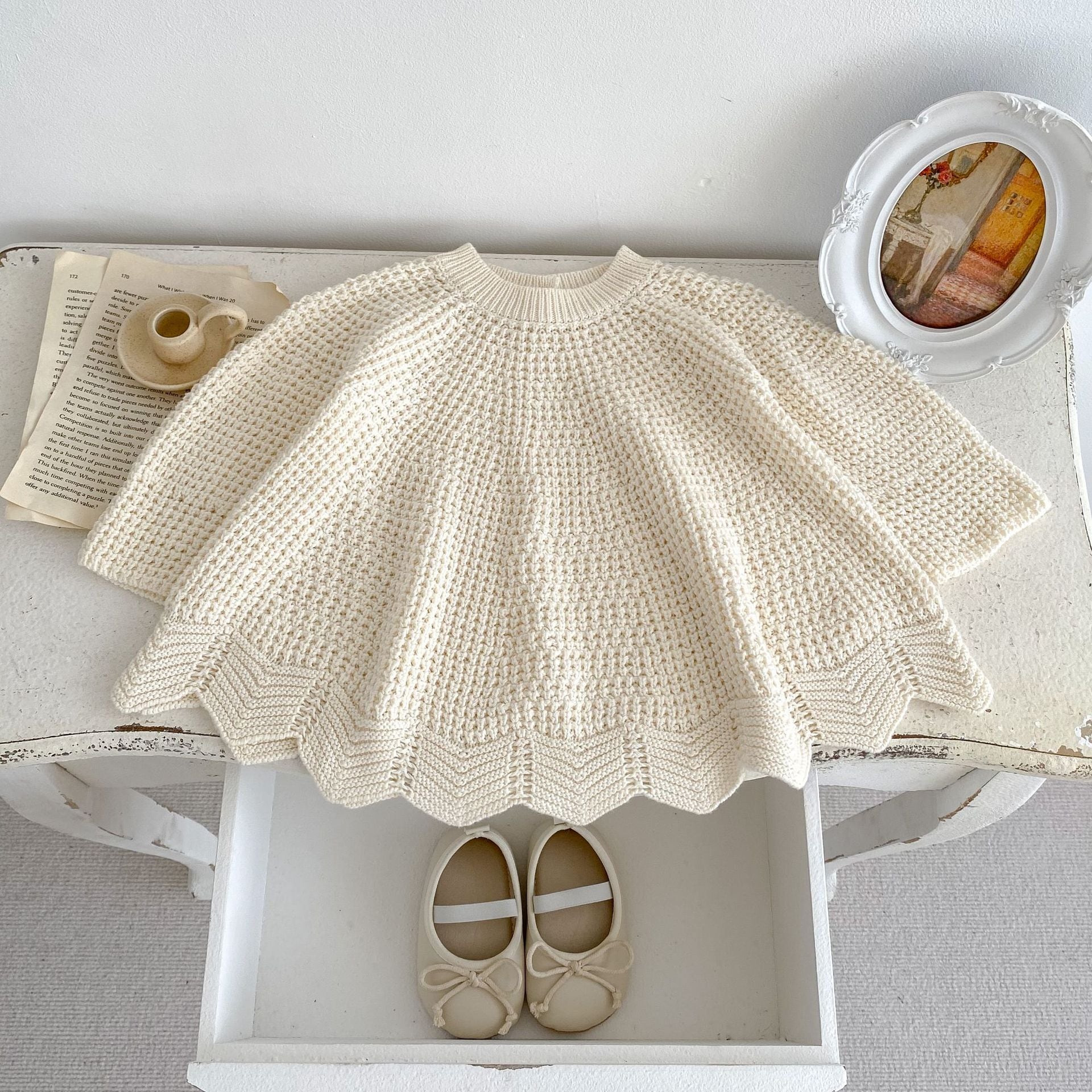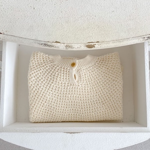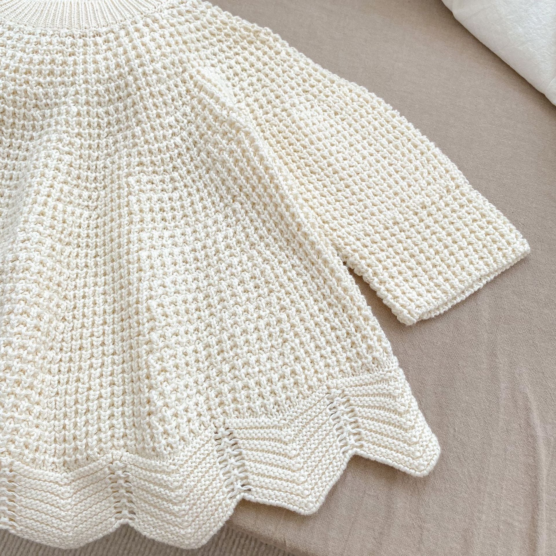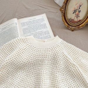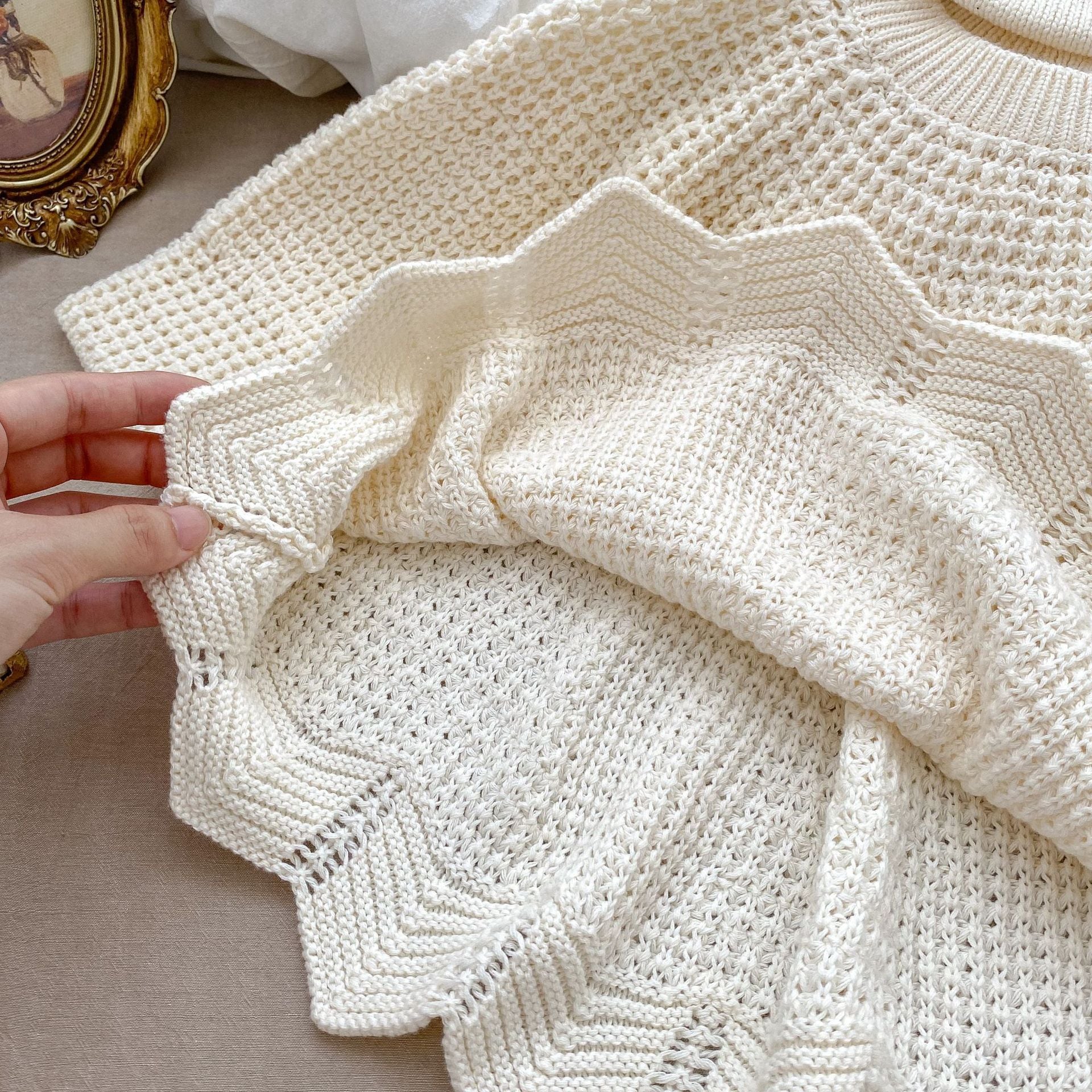 ,幼児キッズ女の子100%綿アイボリー透かし編みニット ゆったり かわいい秋冬服 lwa0127