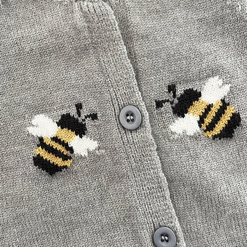 グレー :フロントにキュートなミツバチのキャラクター。ボタン付きで着脱も簡単。