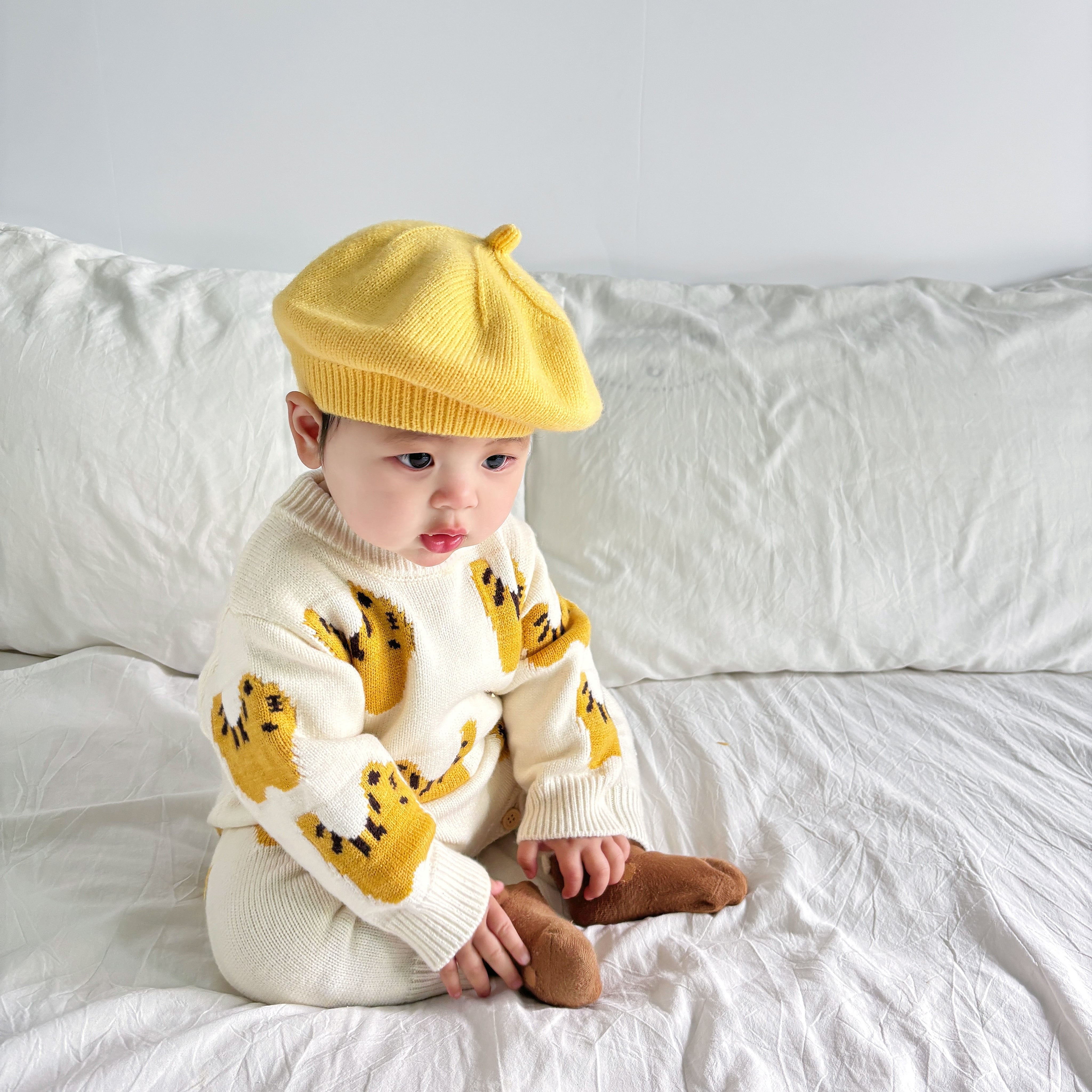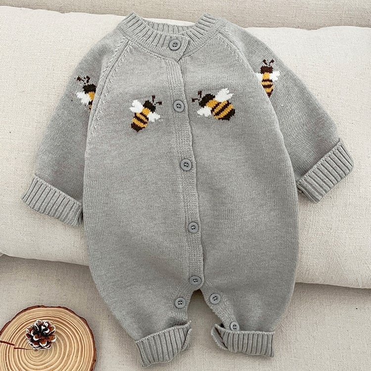 童心あふれるデザインで、秋冬にぴったりのベビーニットロンパース。