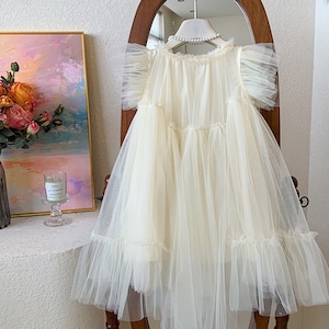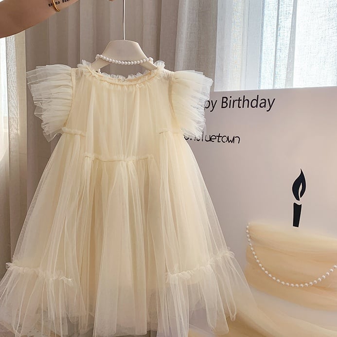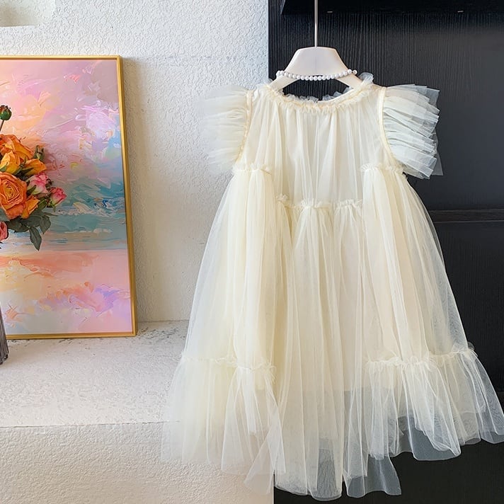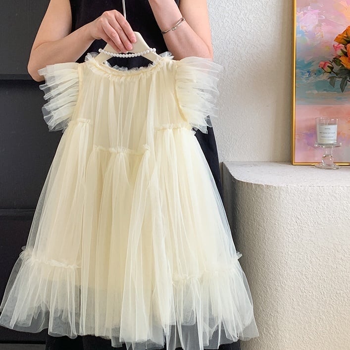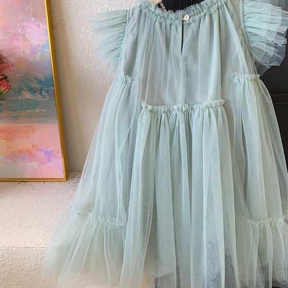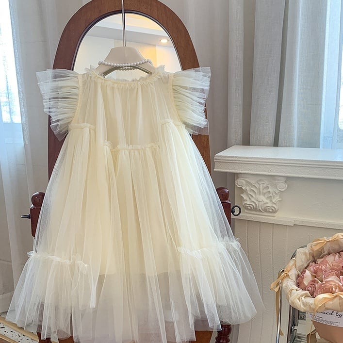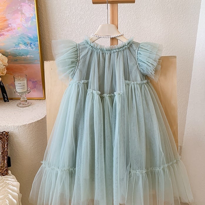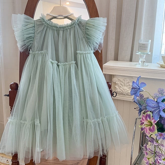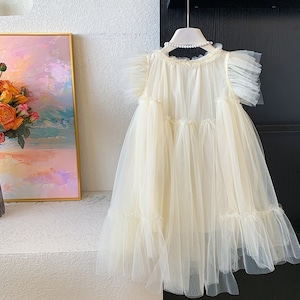 ,キッズ女の子フレンチスリーブチュールワンピース アイボリー グリーン 誕生日 発表会 lwk0105