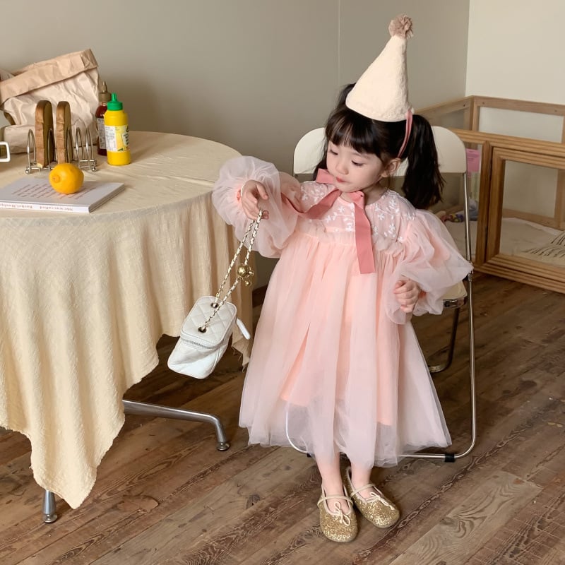 ,幼児キッズ女の子花刺繍付きチュールワンピース 結婚式 パーティー お呼ばれ 発表会 アイボリー ピンク lwk0058