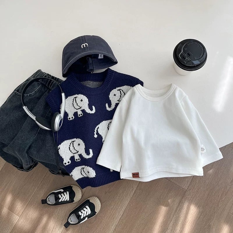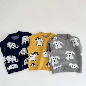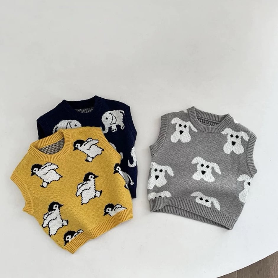 ,アニマルモチーフが可愛い男の子ニットベスト