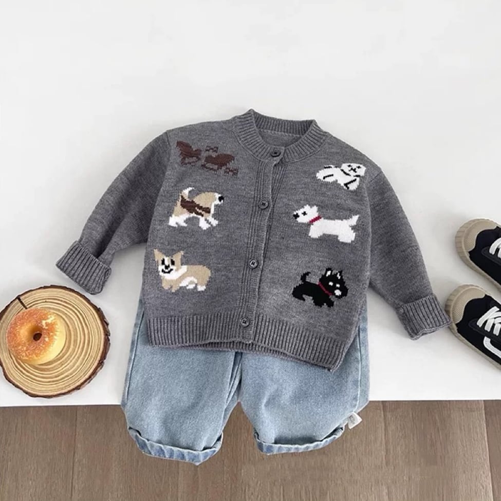 落ち着いたグレーに犬柄をあしらい、遊び心とおしゃれを両立したデザインです。