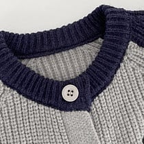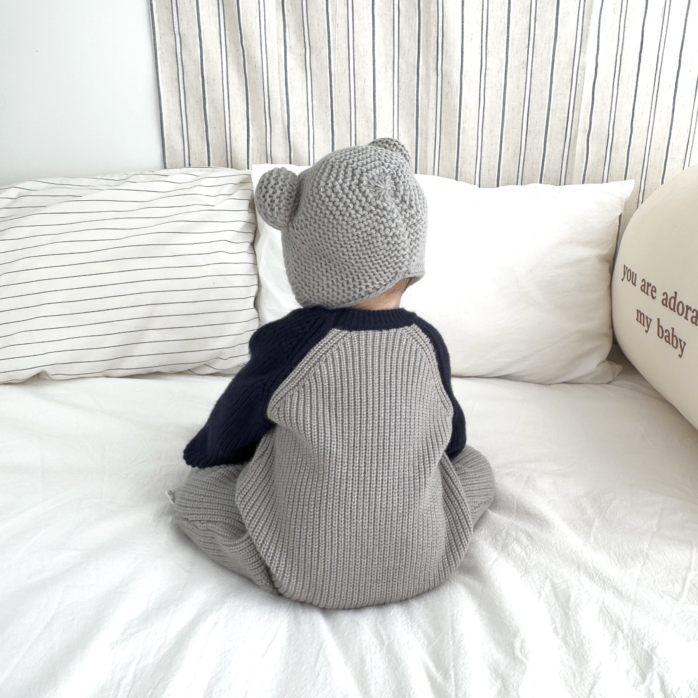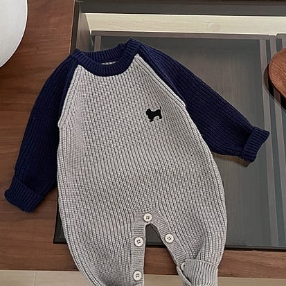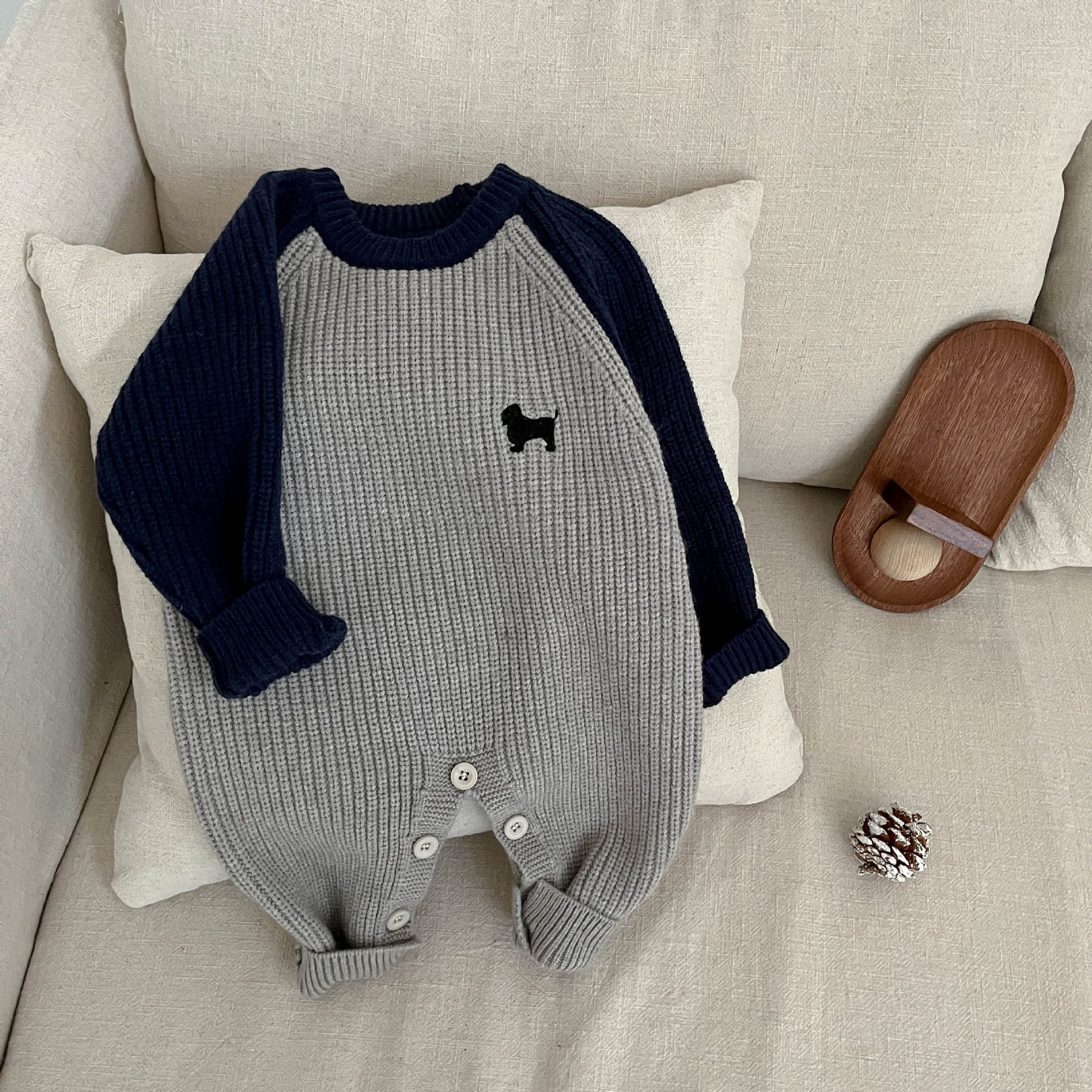 ,ベビー幼児男の子バイカラーニットロンパース カーディガン いぬモチーフ グレー ネイビー かわいい秋冬服 お出かけ lwa0141