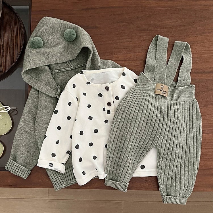 長ズボンのサスペンダー付きデザインで、赤ちゃんが動きやすく快適に過ごせます。