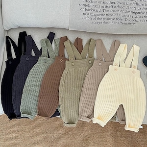 ,ベビー幼児女の子男の子ニットサロペットパンツ 暖かいボトムス アイボリー ブラウン グレー ブラック かわいい秋冬服 lwa0151