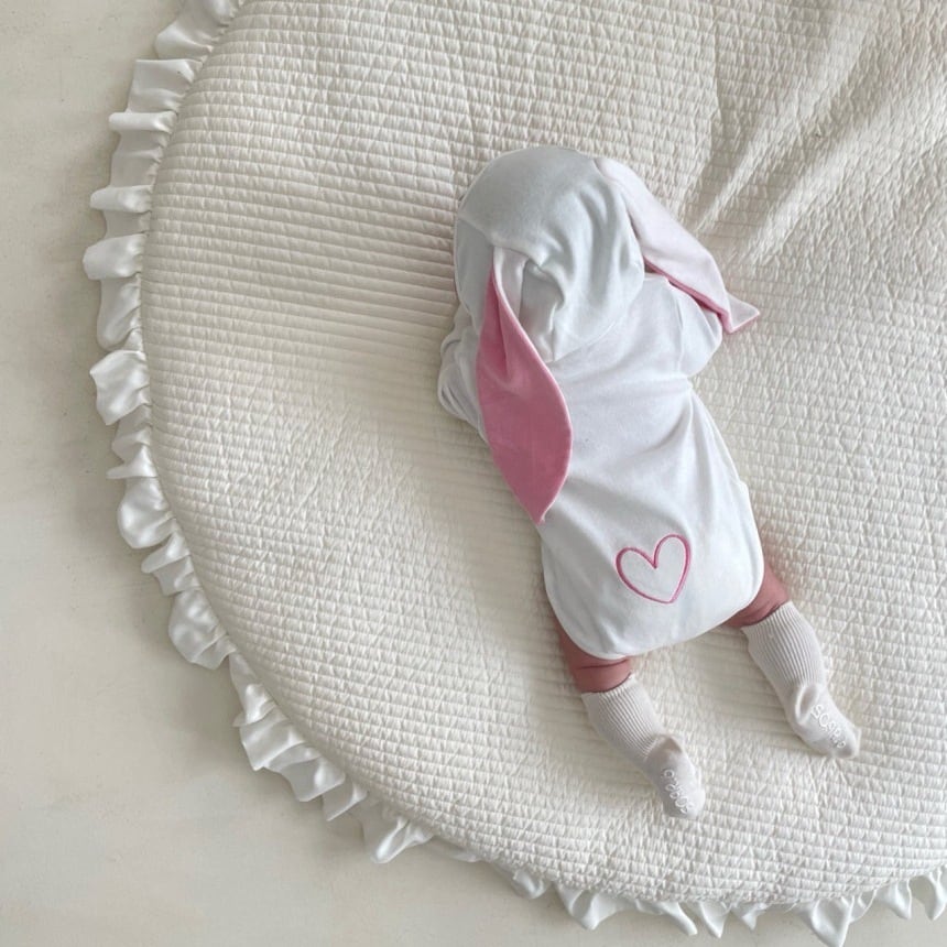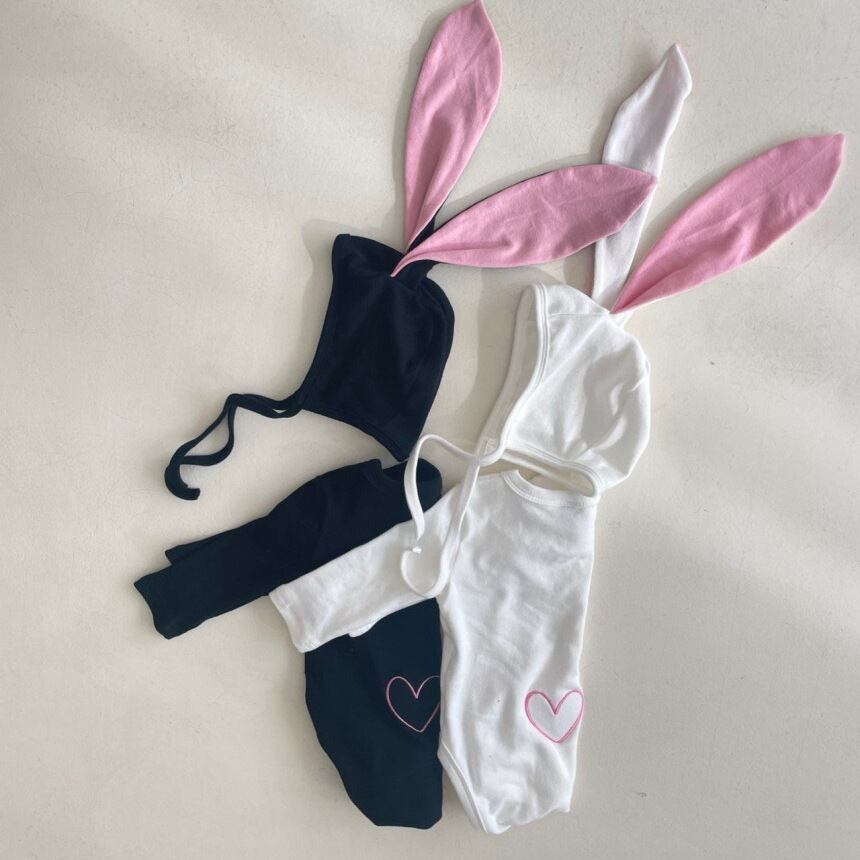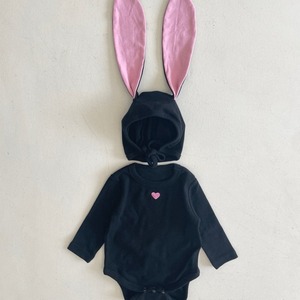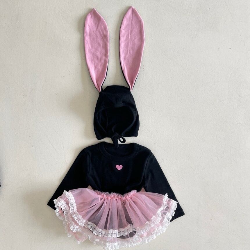 ,ベビー女の子ハート付き長袖ロンパース うさぎ耳帽子付き ホワイト ブラック ピンク かわいい秋冬ベビー服 ハロウィンコスチューム バースデーフォト lwb0135