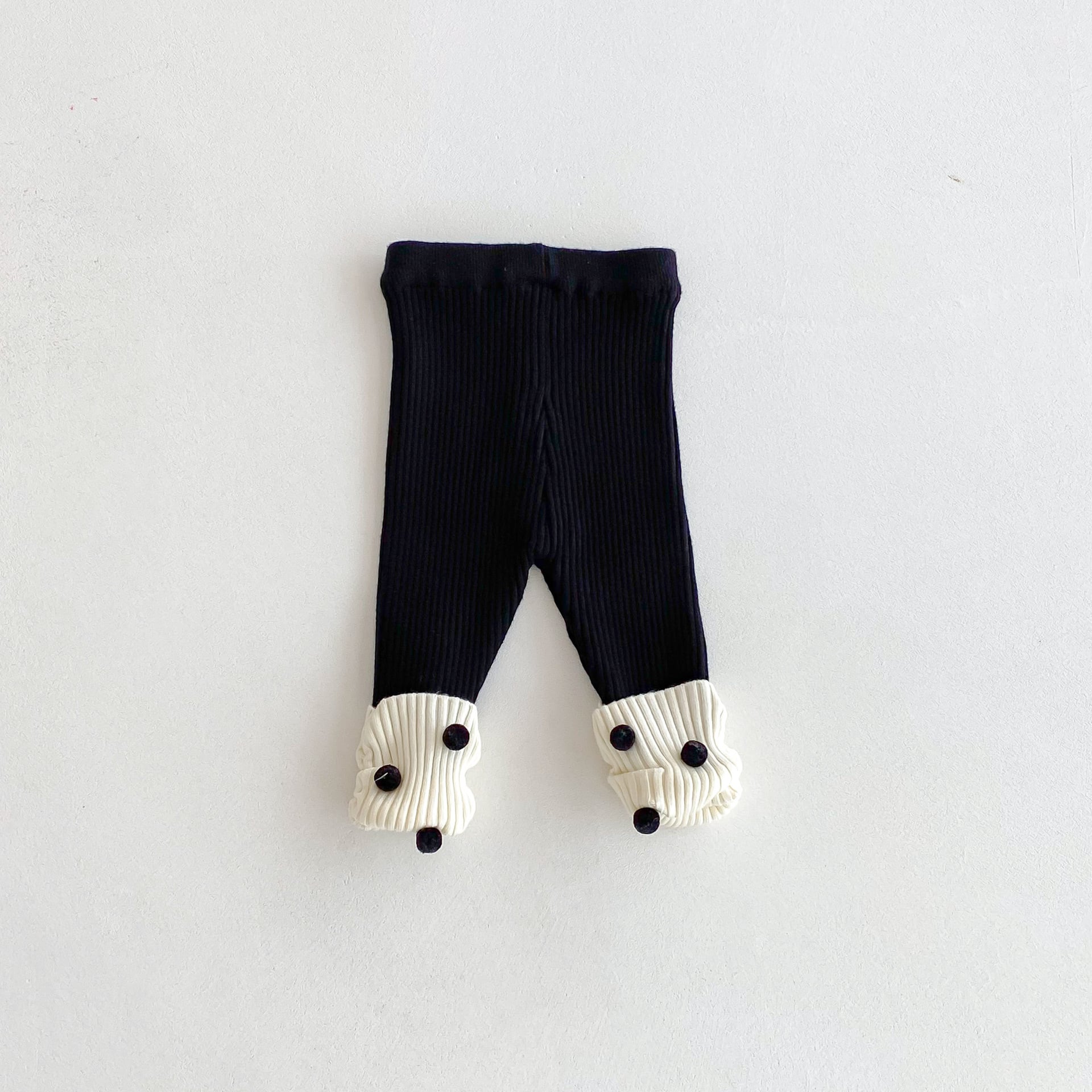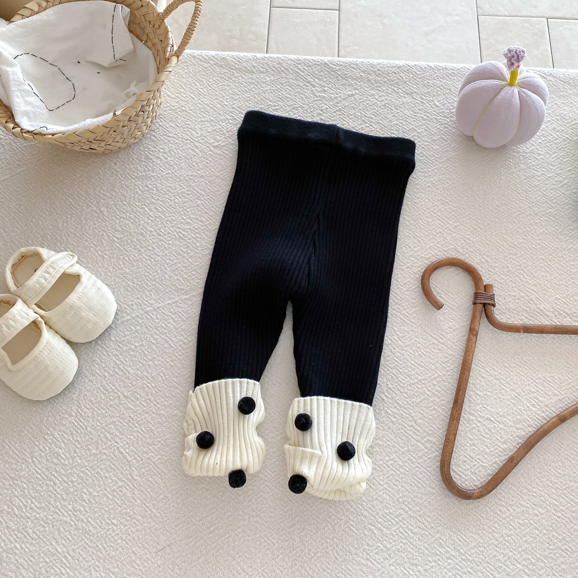,ベビー幼児女の子ポンポン裾切替レギンス ブラック アイボリー ピンク かわいい秋冬服 lwa0049