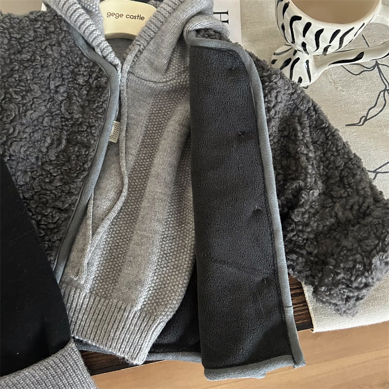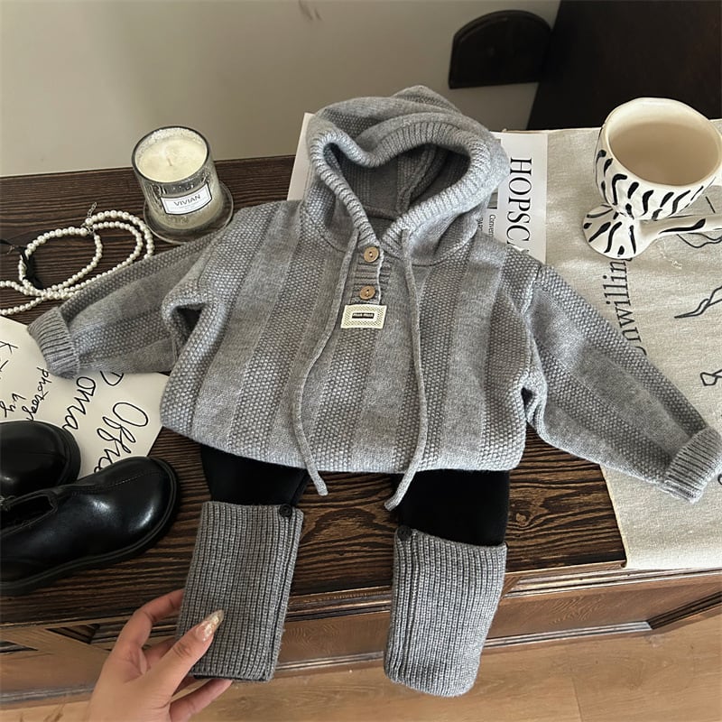 ,幼児キッズ男の子女の子フード付きニットパーカー 暖かいセーター グレー お出かけ カジュアル lwk0007
