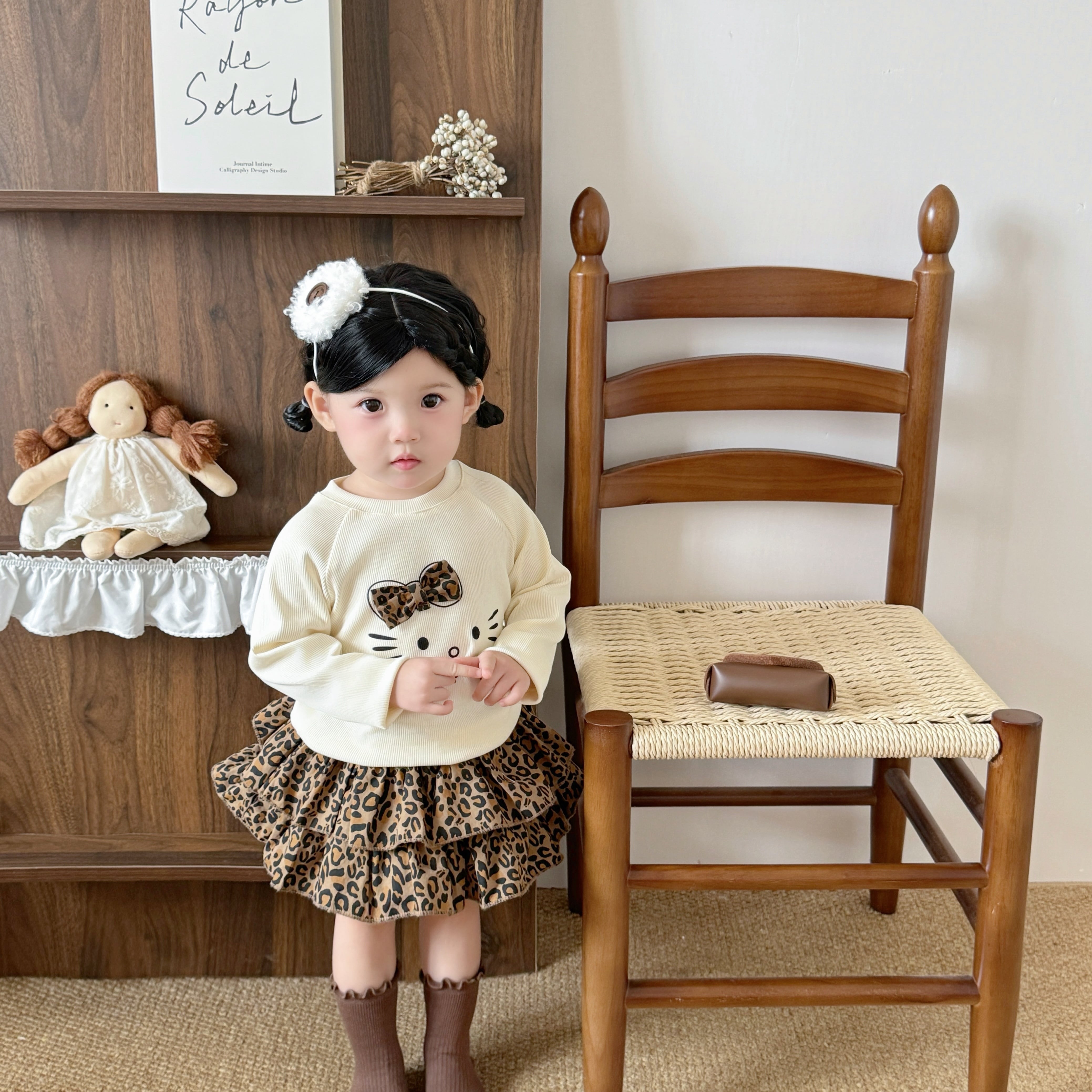 ,幼児キッズ女の子ヒョウ柄2点セット 人気キャラクタートップス フリル付きブルマパンツ かわいい秋冬服セットアップ lwa0065