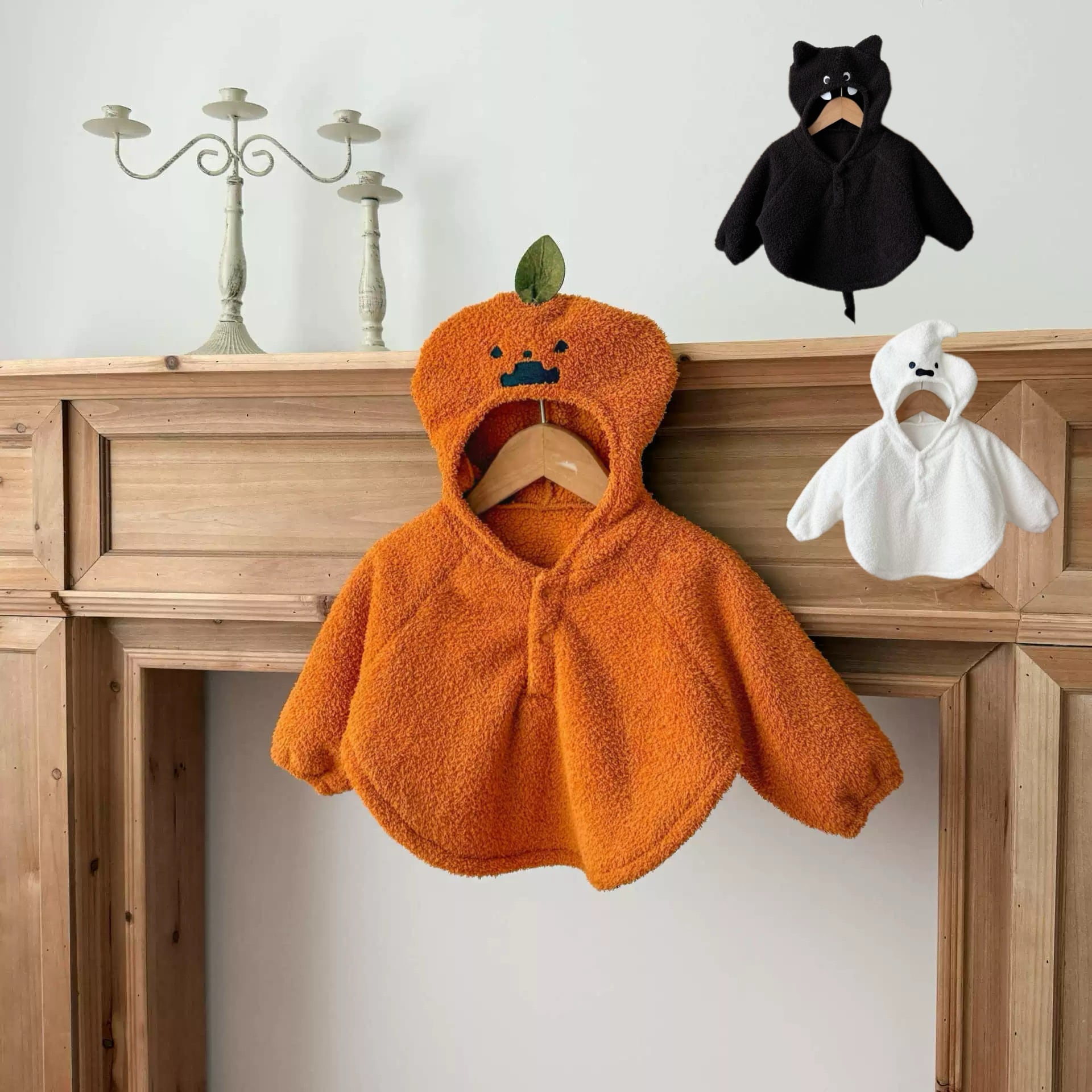 ,ベビー女の子男の子ハロウィンコスチューム フード付きポンチョ かぼちゃ コウモリ おばけ パーティー イベント lwb0135