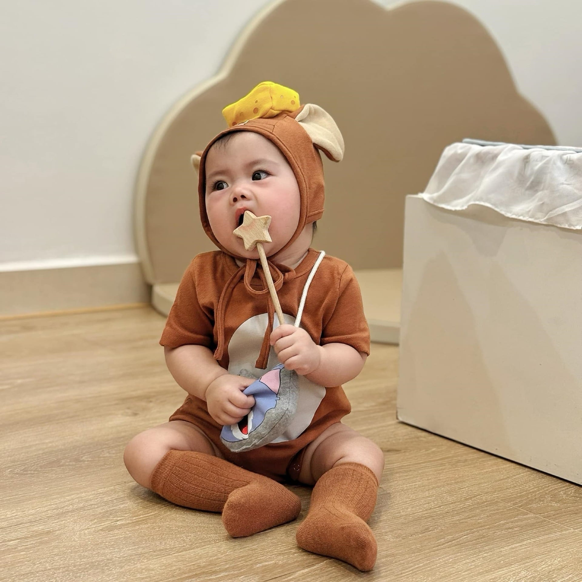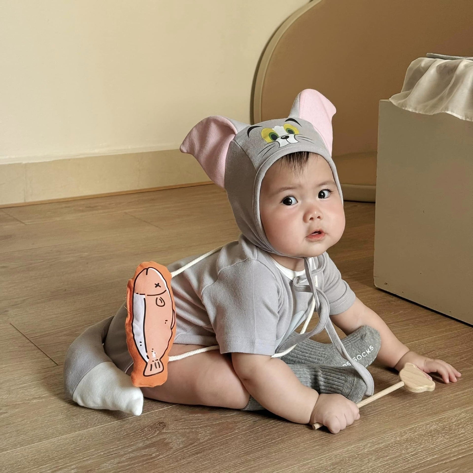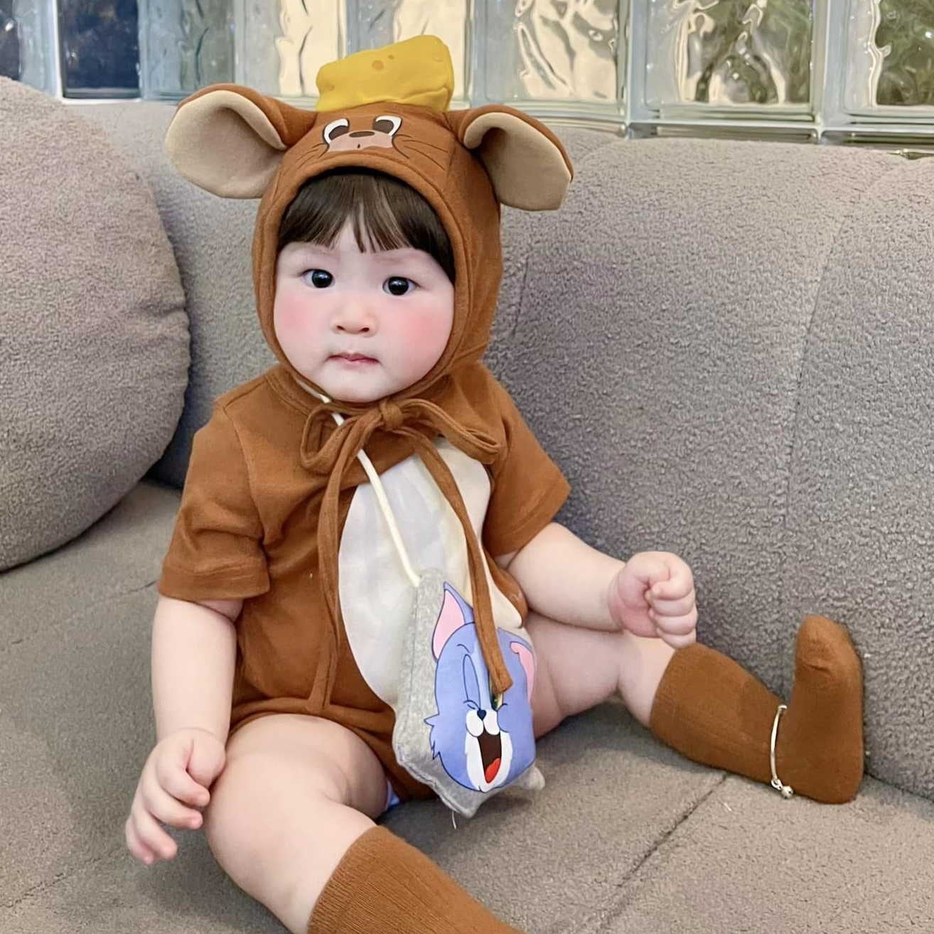 ,ベビー女の子男の子人気キャラクターハロウィンコスチュームロンパース 帽子 ショルダーバッグ付き グレー ブラウン パーティー lwb0137