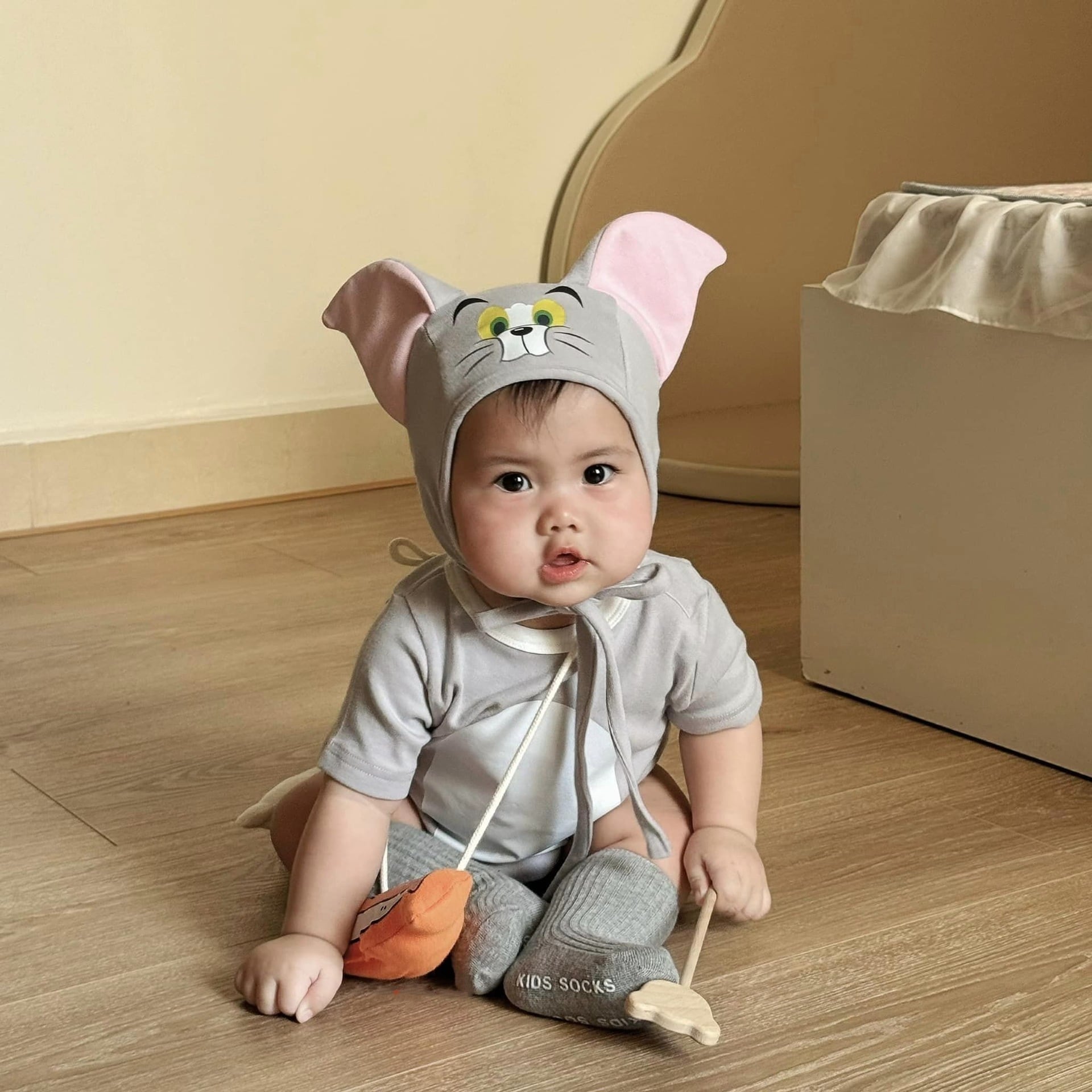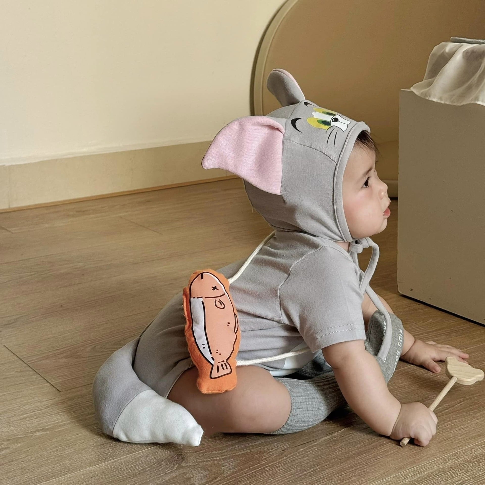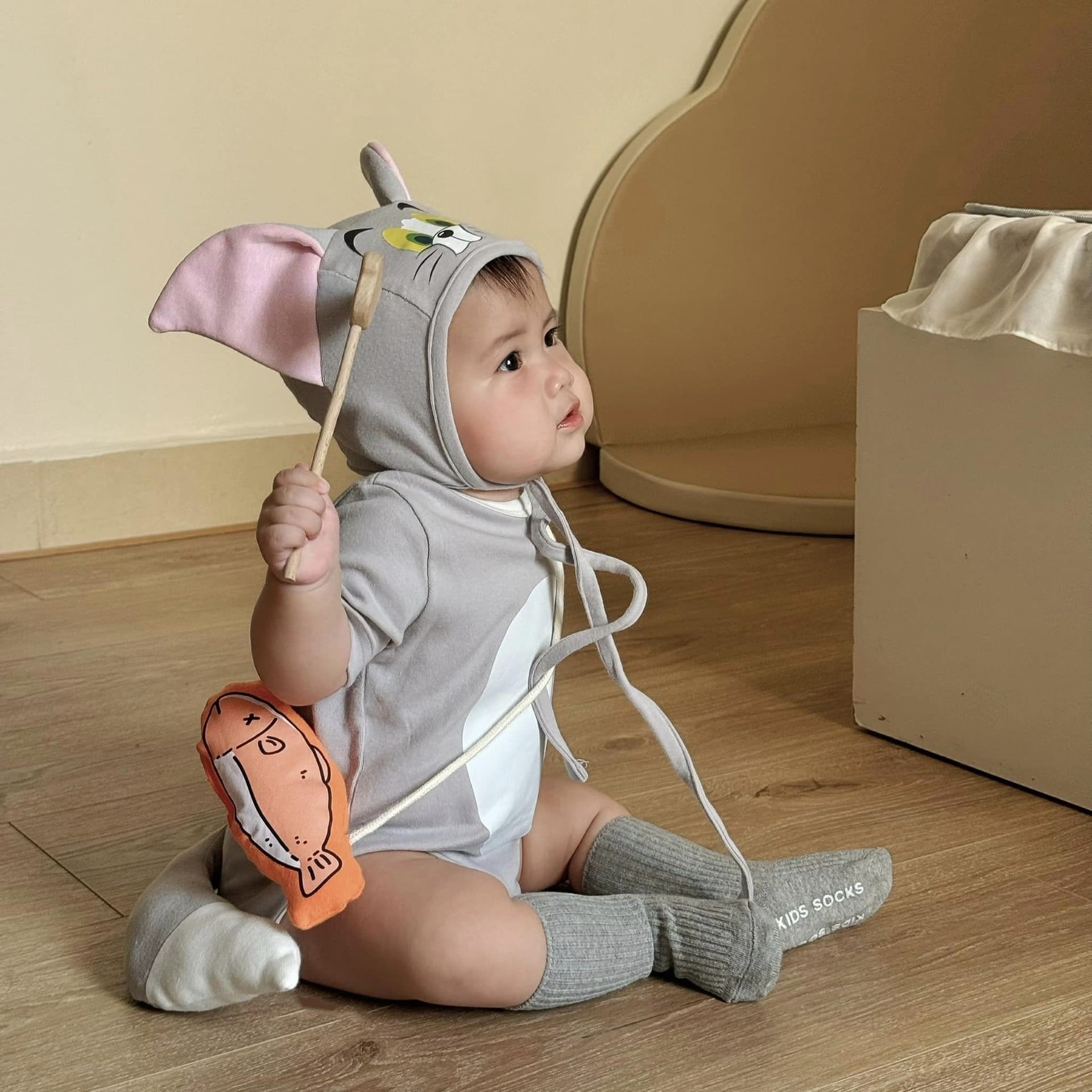 ,ベビー女の子男の子人気キャラクターハロウィンコスチュームロンパース 帽子 ショルダーバッグ付き グレー ブラウン パーティー lwb0137