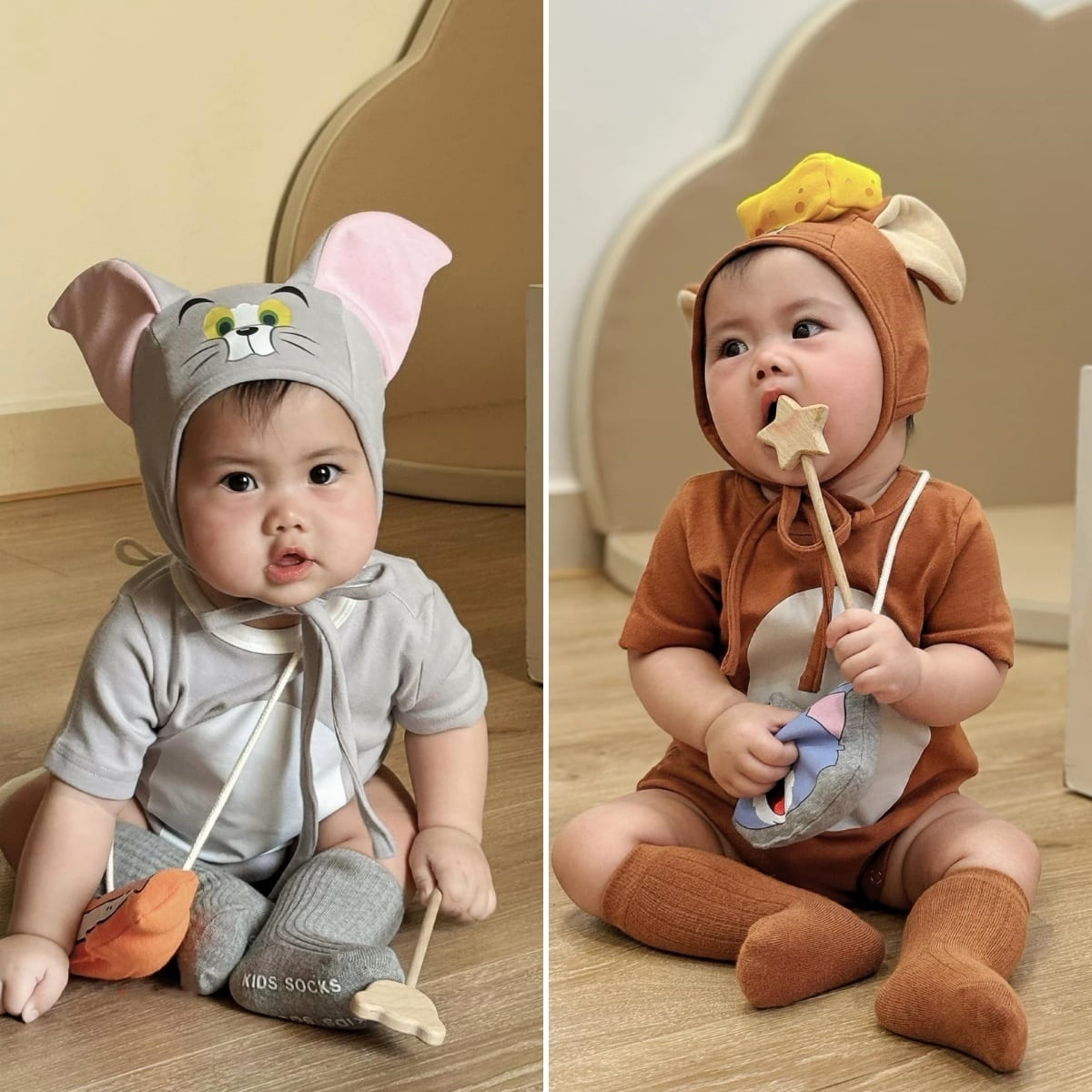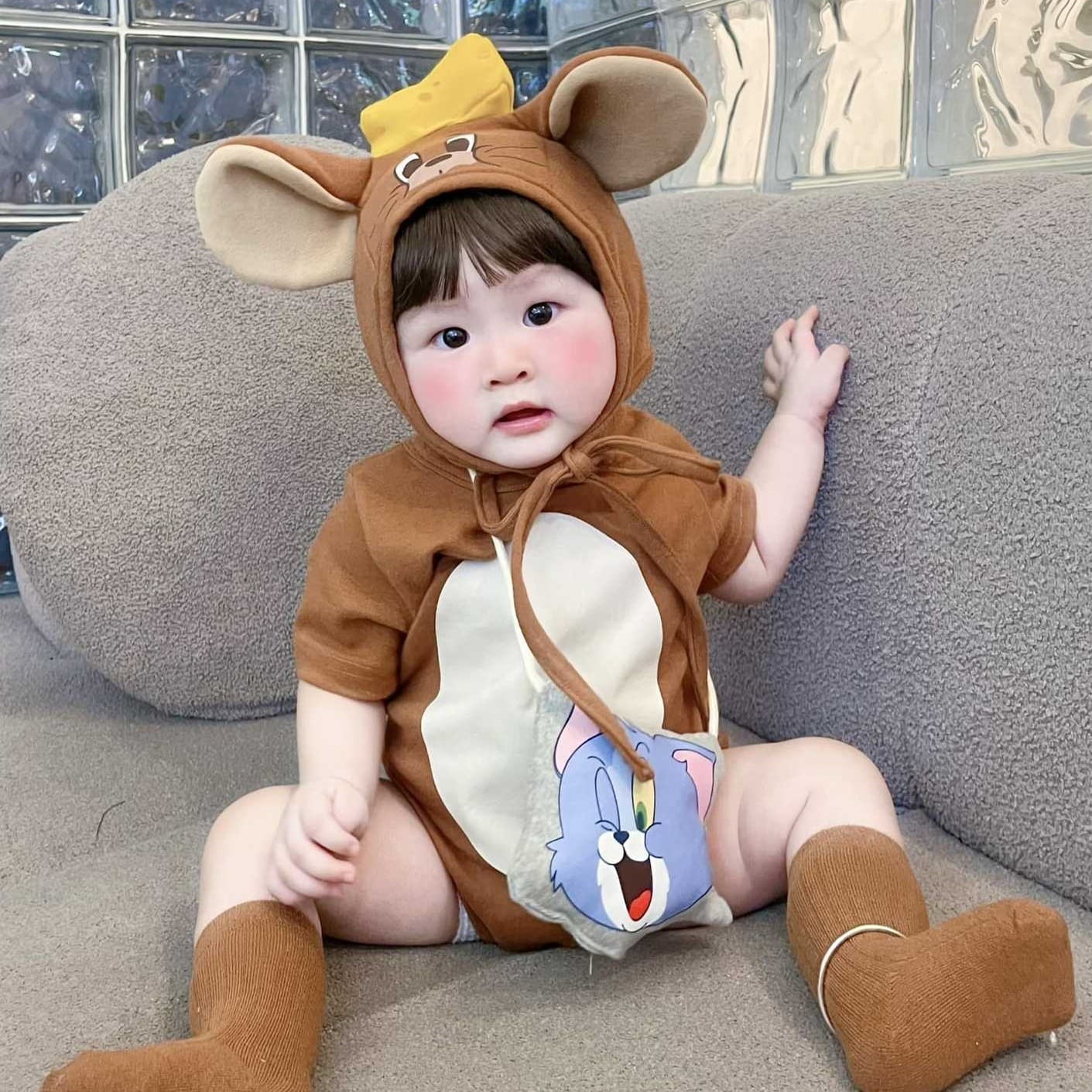 世界中で愛されるキャラクターをモチーフにした、ユニークで楽しいベビー用ロンパースセットです。
