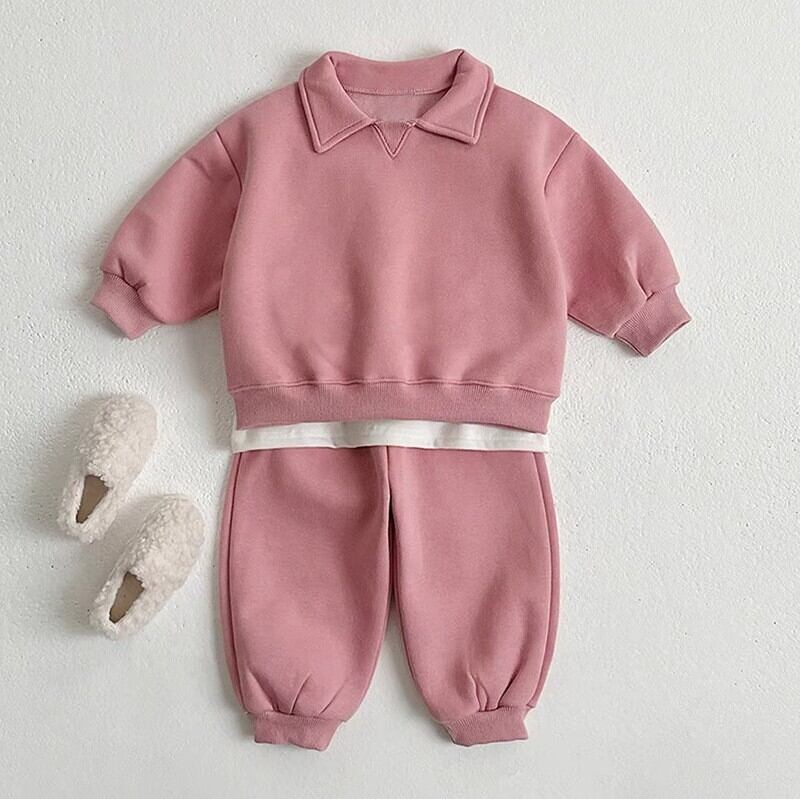 動きやすさとおしゃれを両立した、秋冬にぴったりのキッズ用スウェットセットアップ。