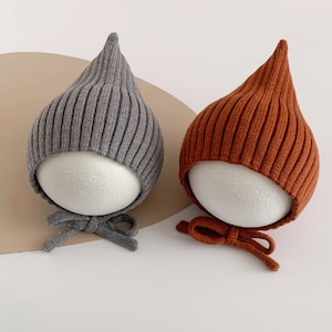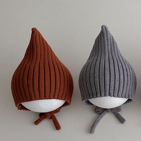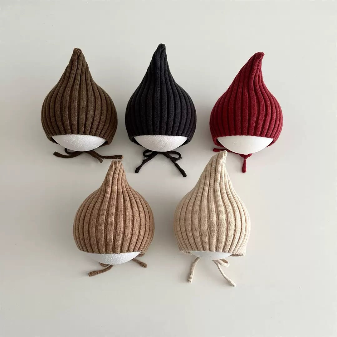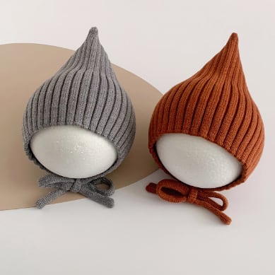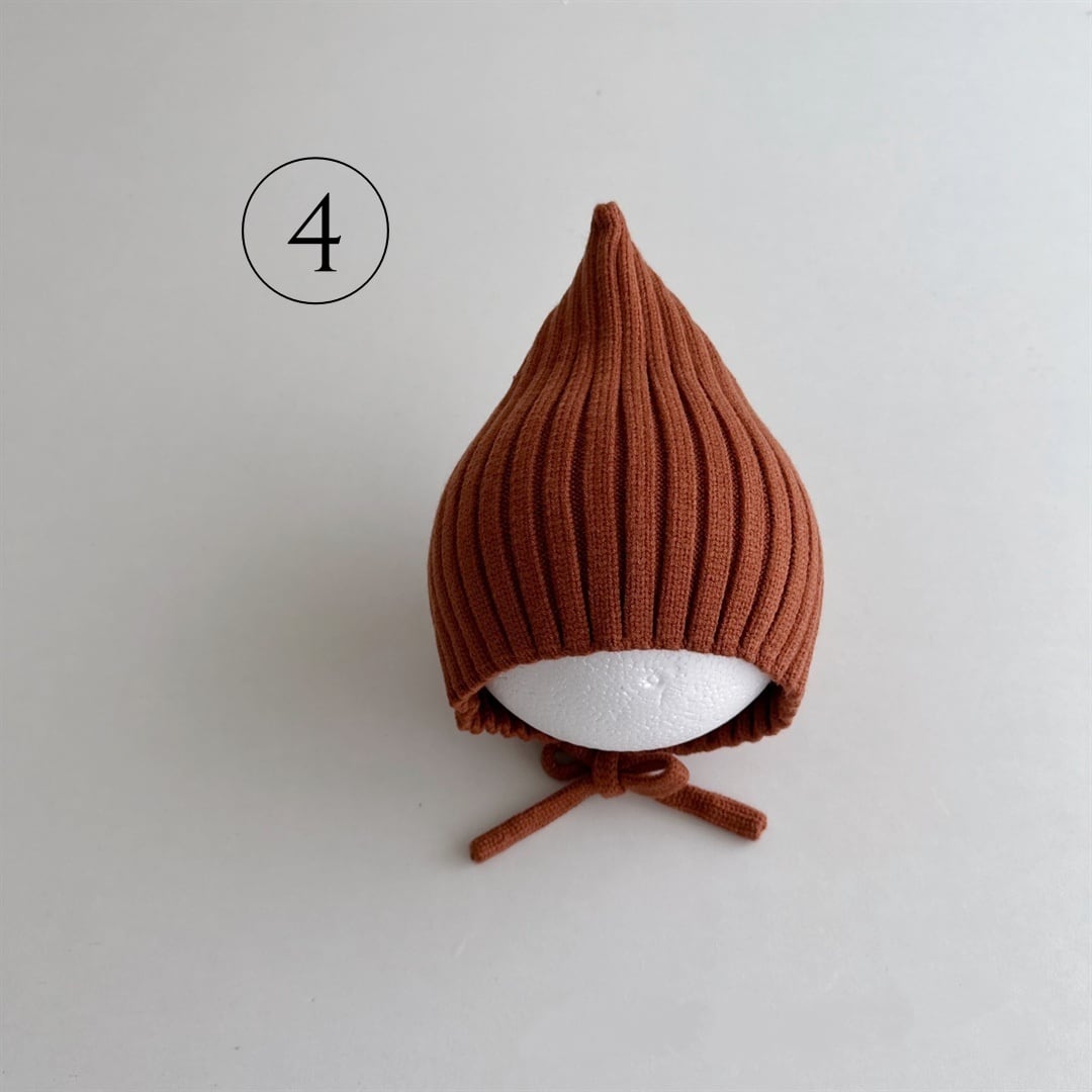 ,ベビー幼児女の子男の子とんがりニット帽 かわいい秋冬小物 防寒グッズ おしゃれ ベージュ レッド キャラメル ブラウン ブラック グレー lwb0068