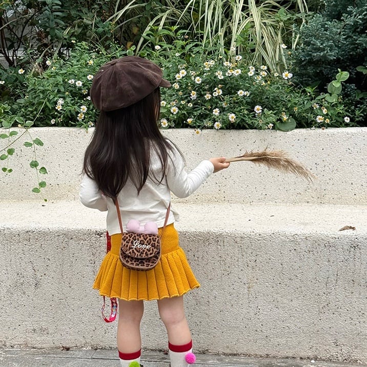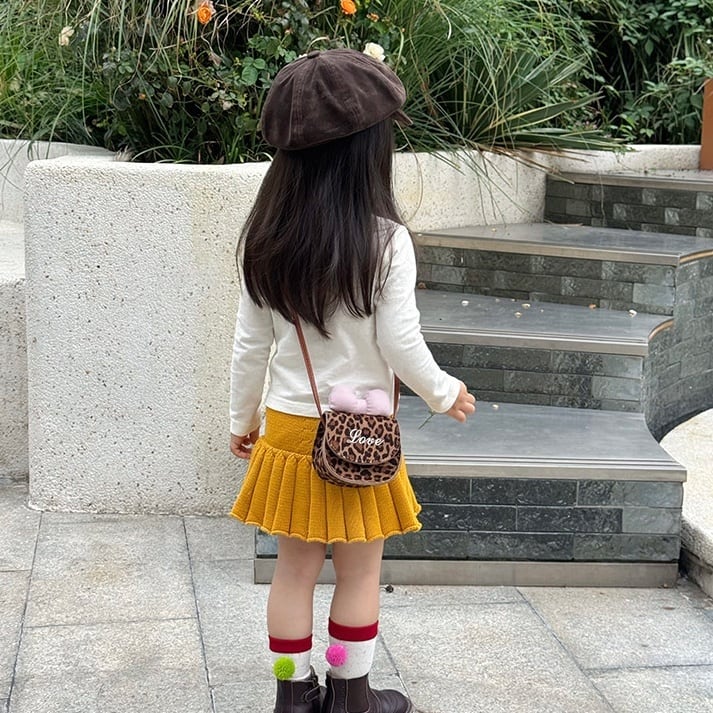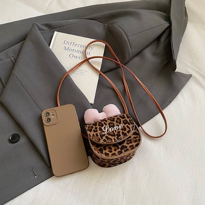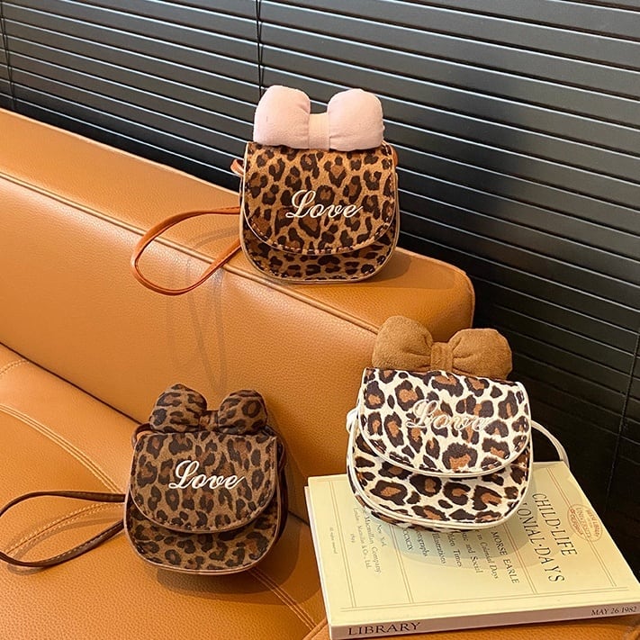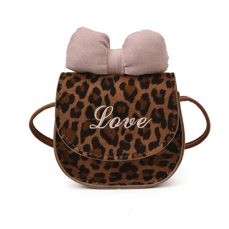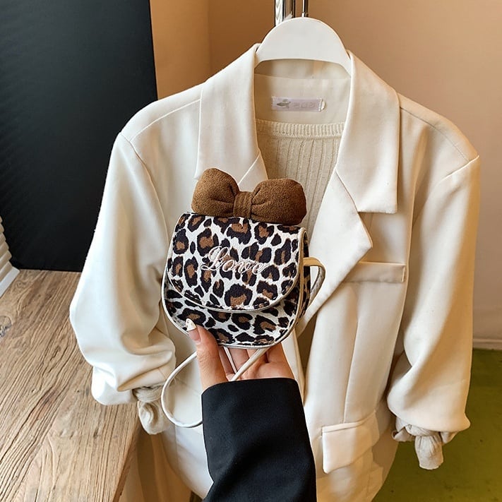 ,キッズ用リボン付きヒョウ柄ミニショルダーバッグ レオパード柄 ブラウン ホワイト おしゃれ小物 lgb0020