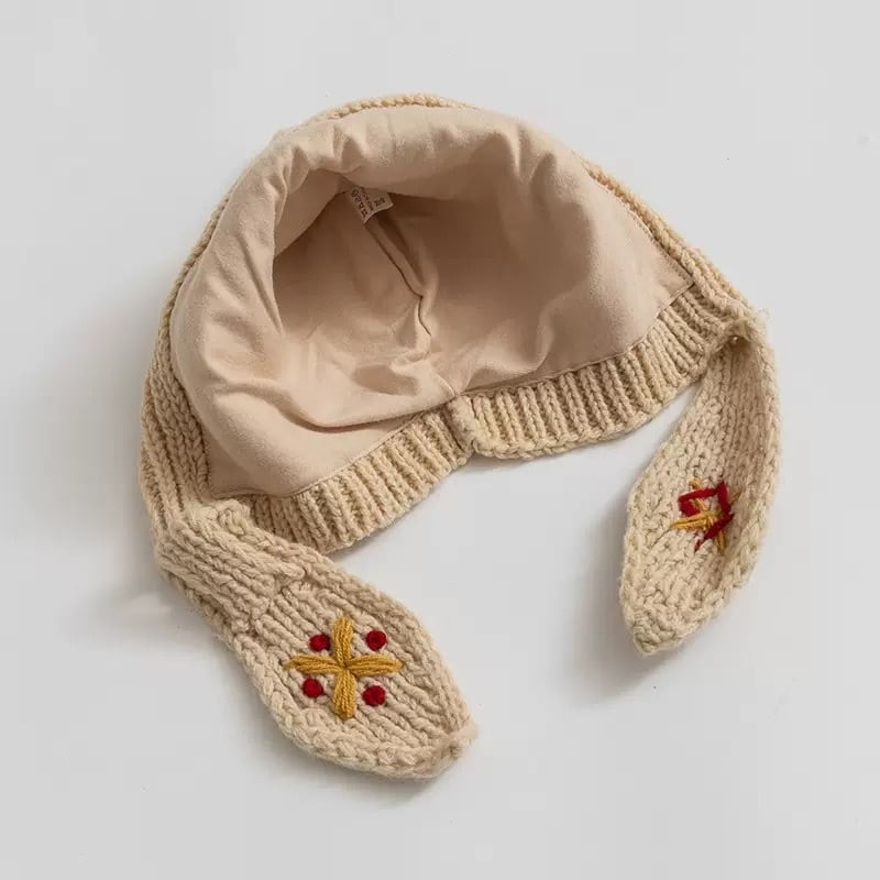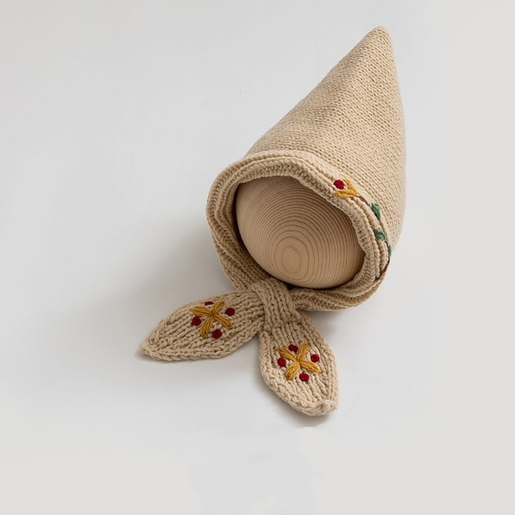 ,ベビー幼児女の子暖かい花刺繡とんがりニット帽 裏地付きボンネット 秋冬防寒小物 プレゼント ホワイト ベージュ ピンク レッド ブラウン イエロー lwb0066