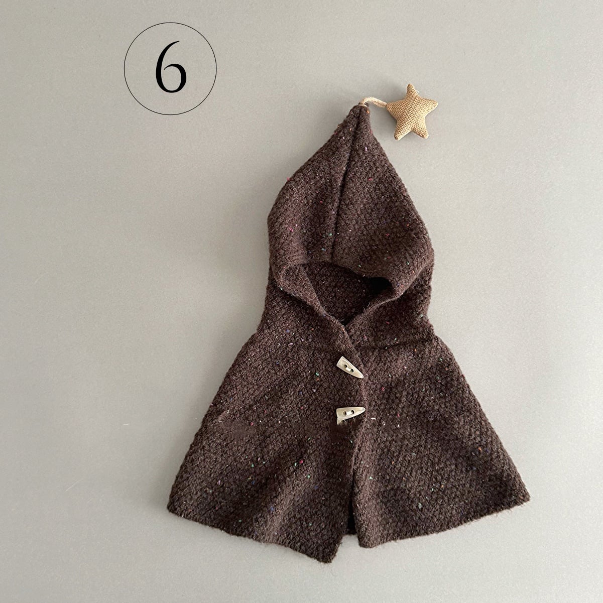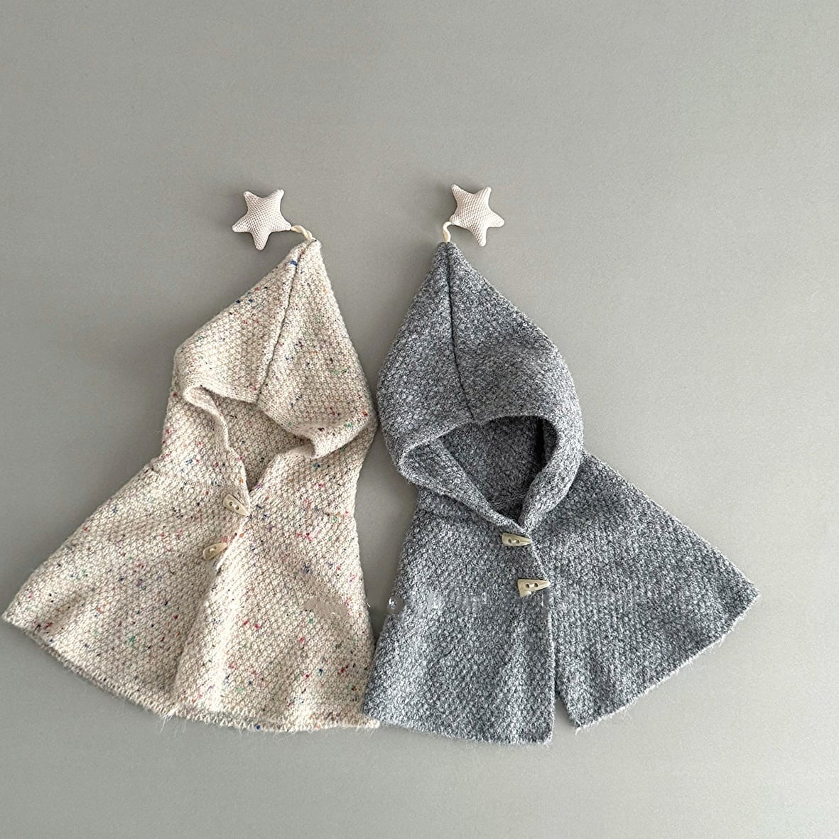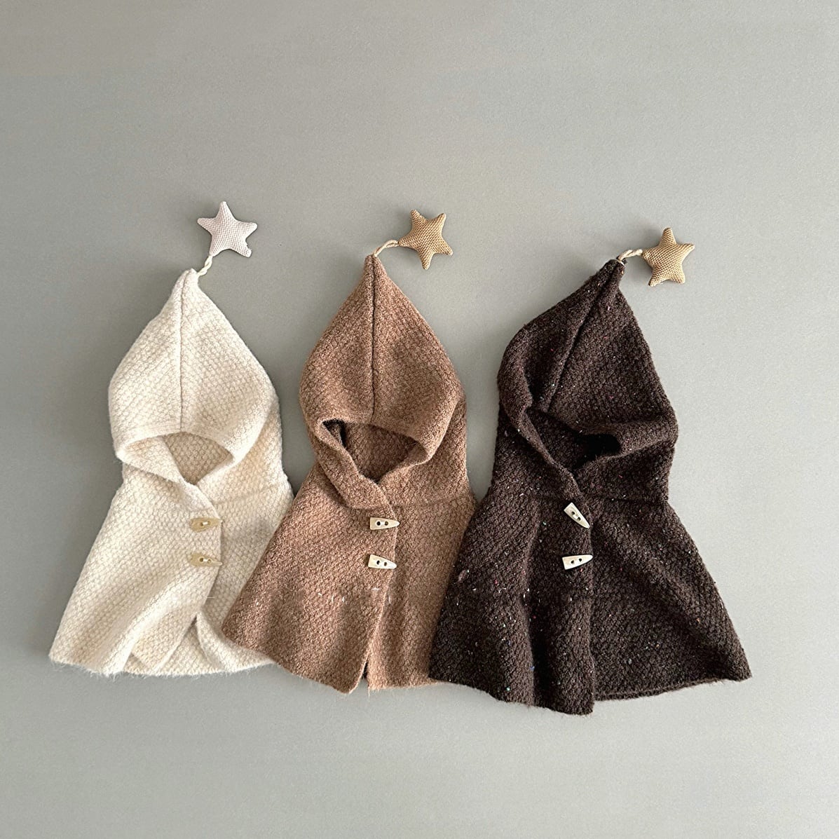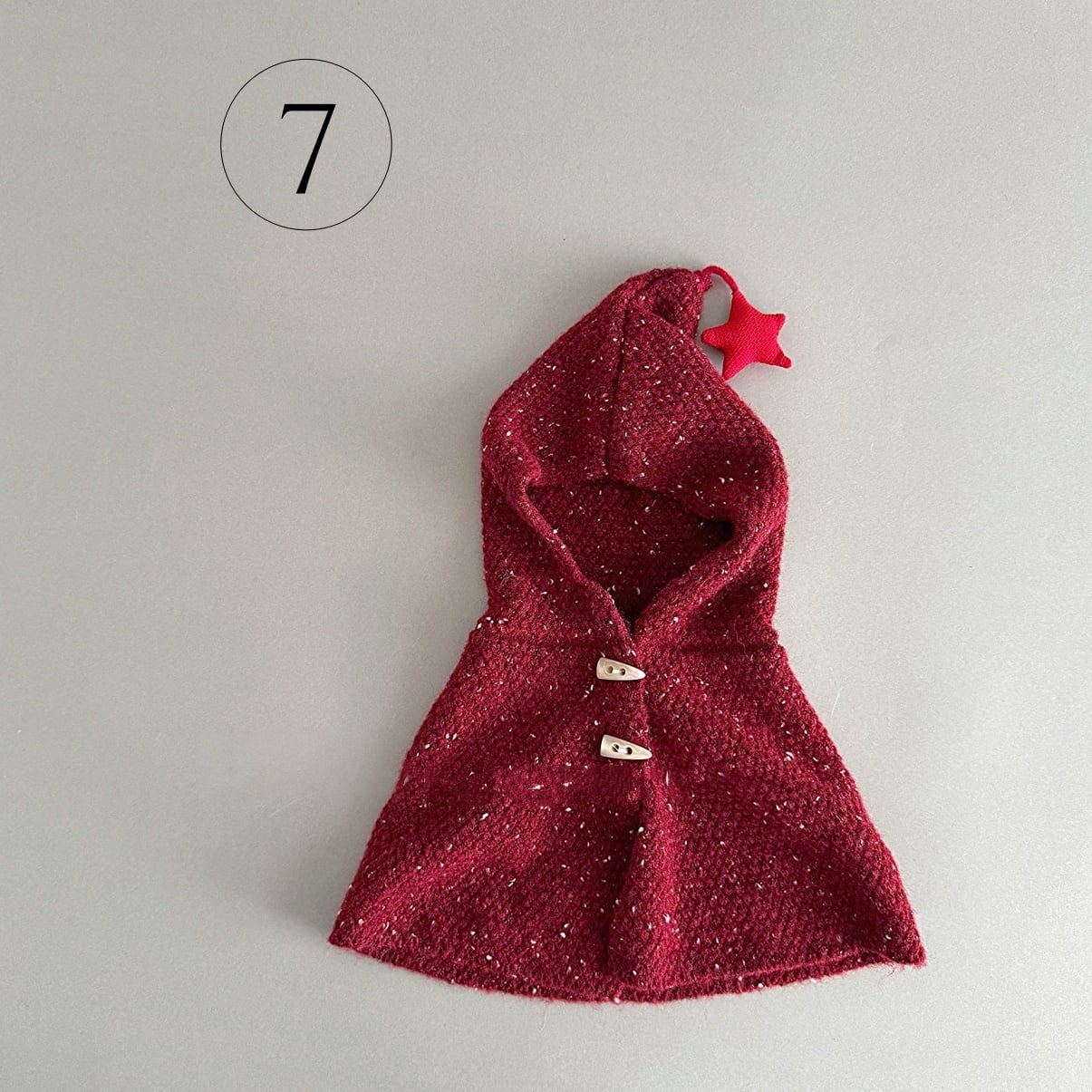,幼児キッズ女の子男の子星フード付きニットポンチョ ケープ クリスマスコーデ ホワイト レッド ブラウン グレー 防寒グッズ lwa0122