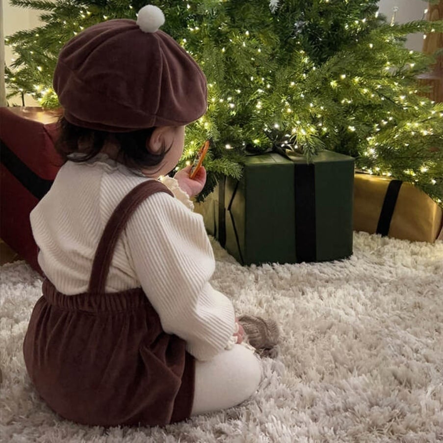 ,ベビー女の子男の子ベロアサスペンダブルマパンツ 帽子付き クリスマスコーデ レッド ブラウン グリーン lwb0119