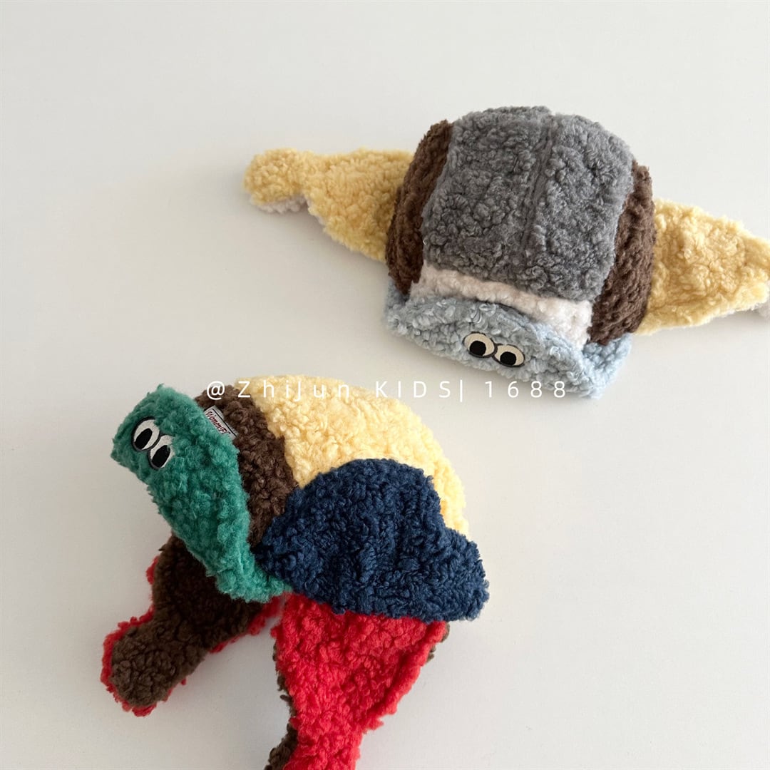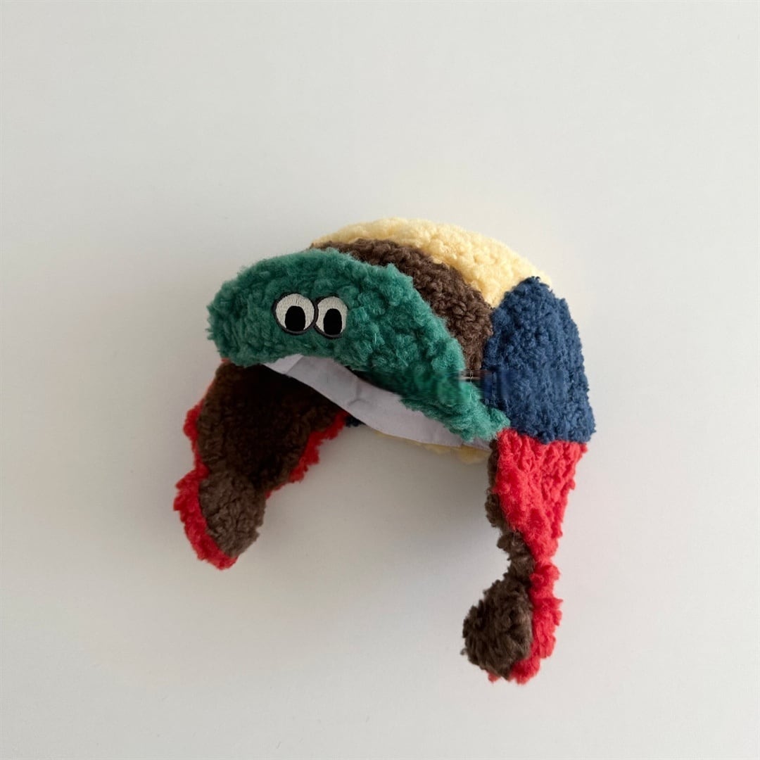 ,子供用もこもこカラフル冬帽子 耳当て付き かわいいEYE 防寒グッズ lwk0110
