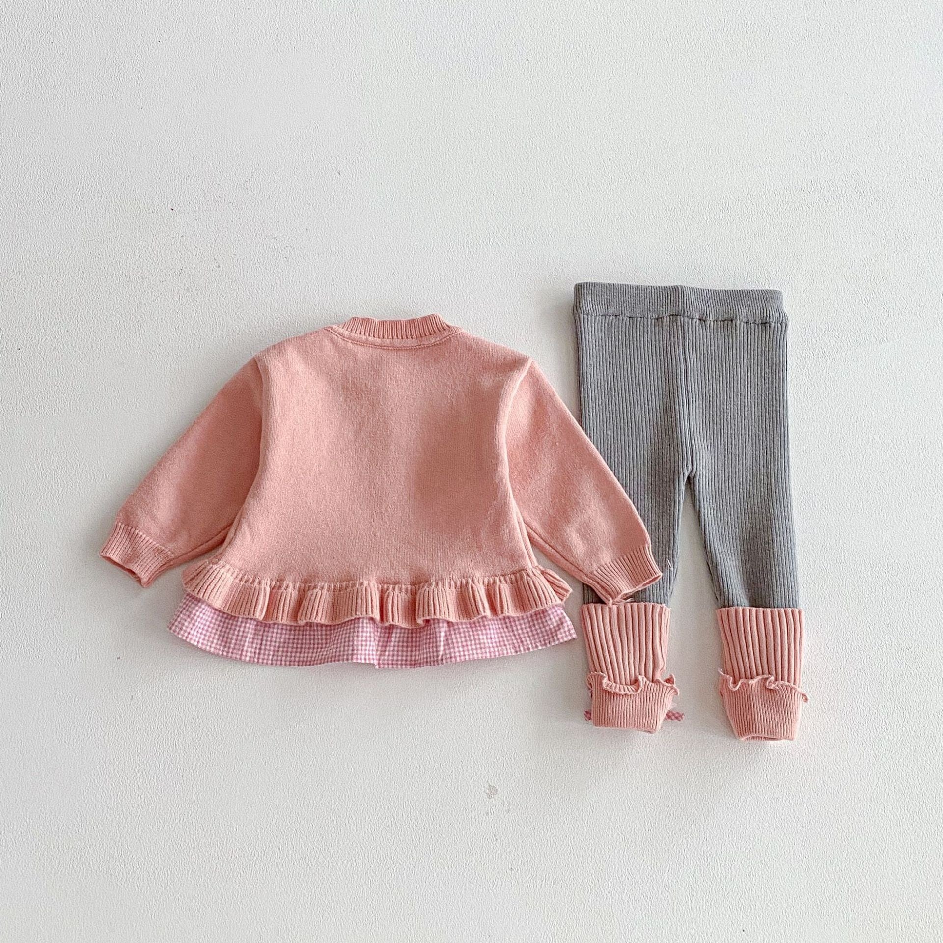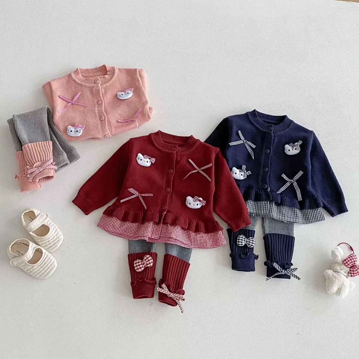 ,ベビー幼児女の子人気キャラクター2点セット カーディガン レギンスパンツ ピンク レッド ネイビー かわいい秋冬ベビー服 lwa0043