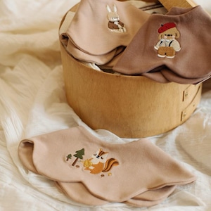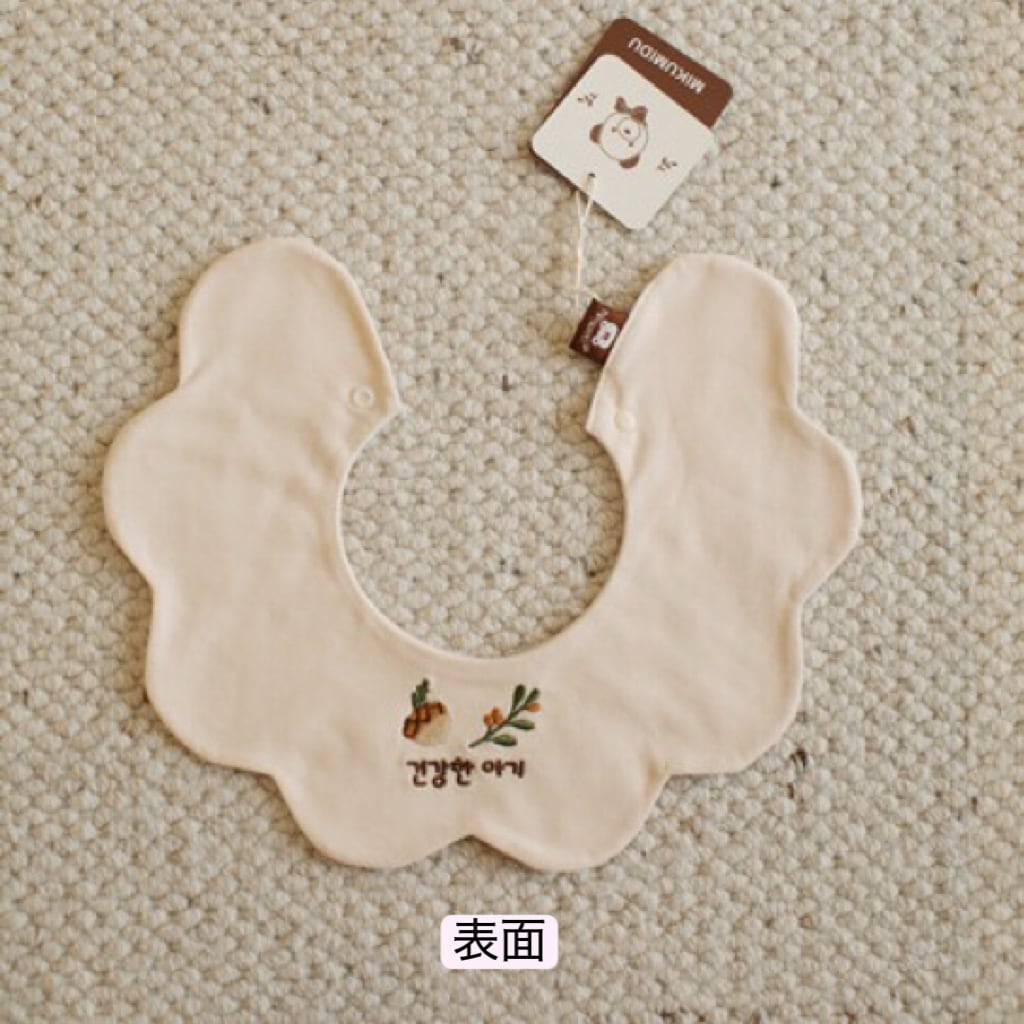 ,両面使える 花びらドーナツ型ベビースタイ(綿100%)