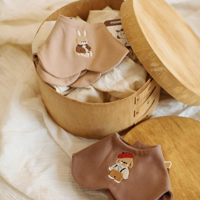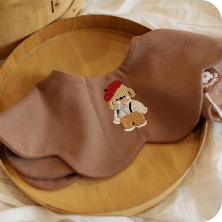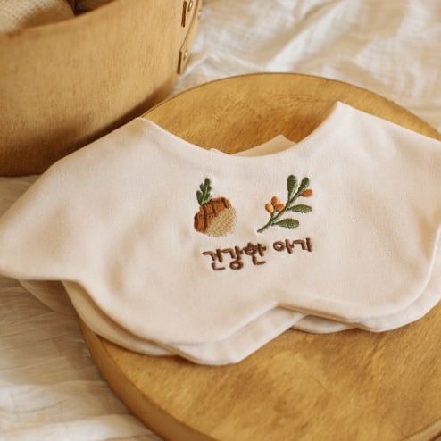 両面使えるリバーシブル仕様で、表面にはかわいい刺繍デザイン、裏面はシンプルな無地。
