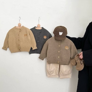 ,くまワッペンが可愛い 男の子ニットカーディガン