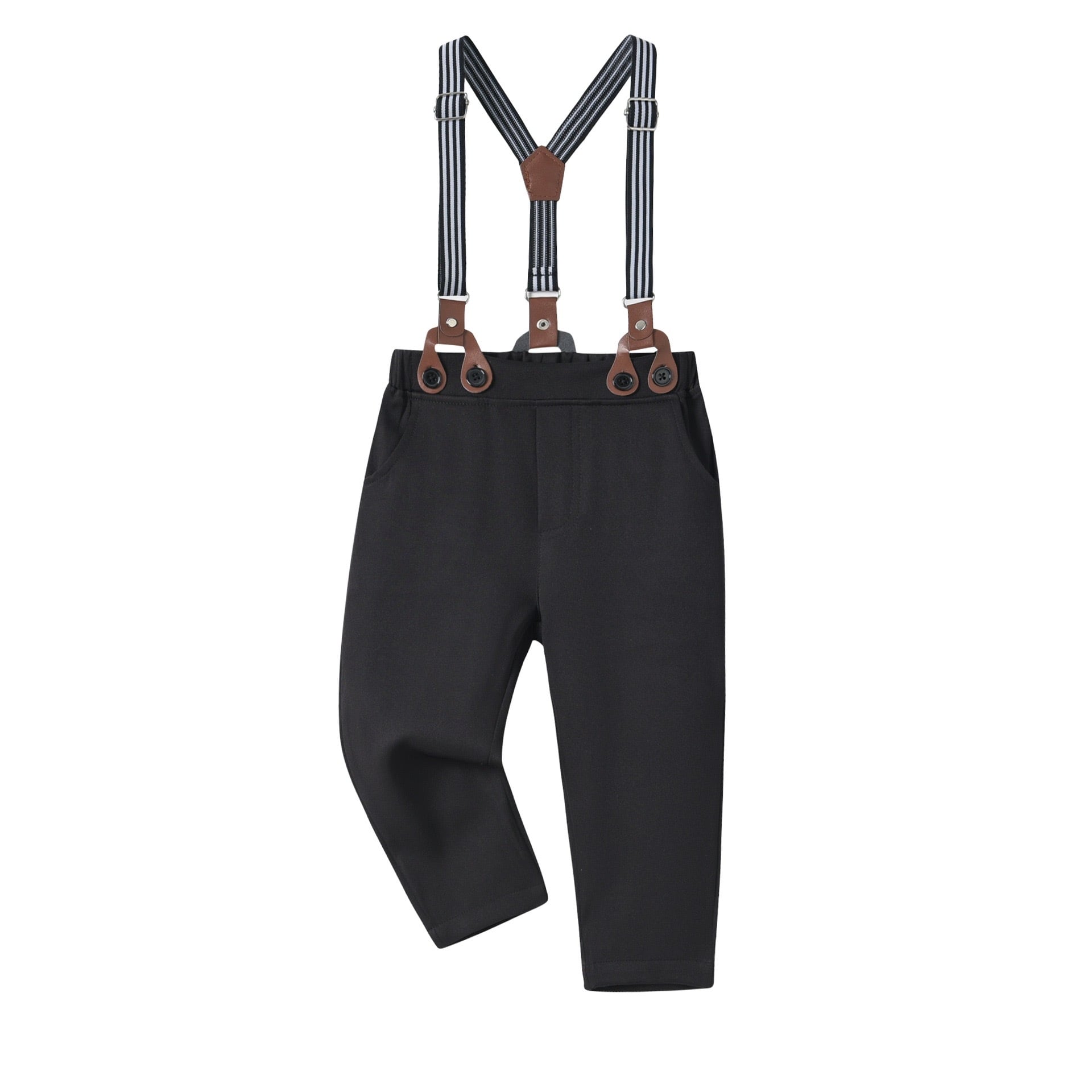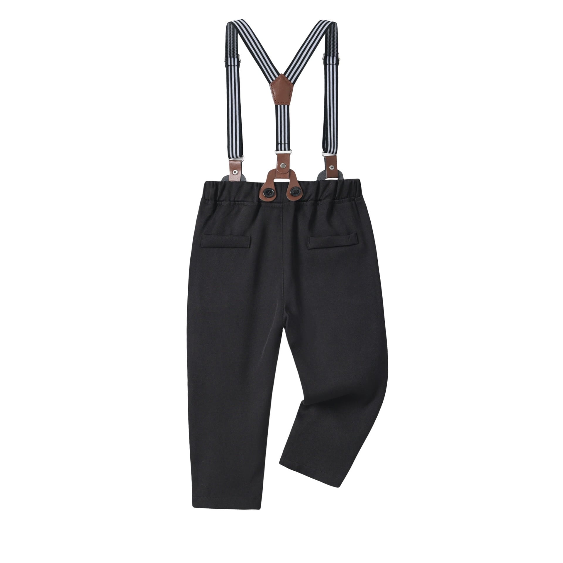 上質な素材を使用した男の子用フォーマルスーツ5点セットは、シャツ・ベスト・ロングパンツに加え、ブラックの蝶ネクタイ付きで、特別な一日をより華やかに演出します。