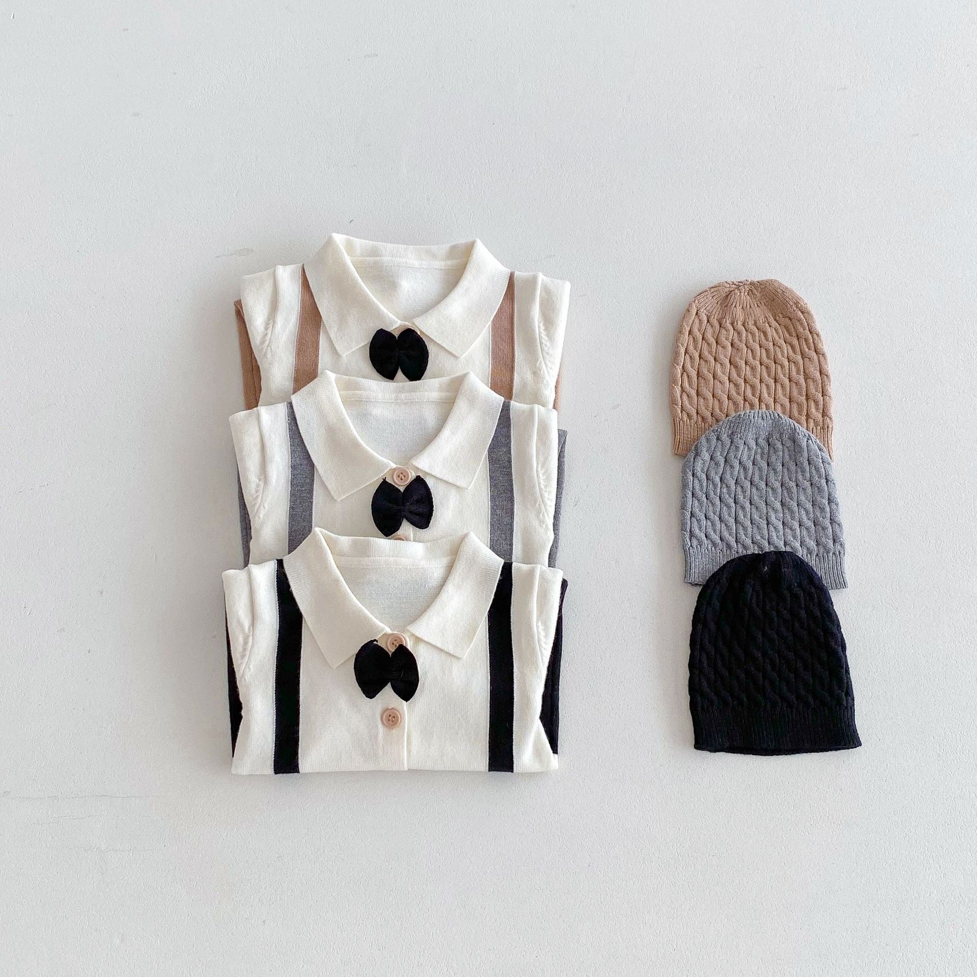 ,フォーマル風 帽子付きニットロンパース