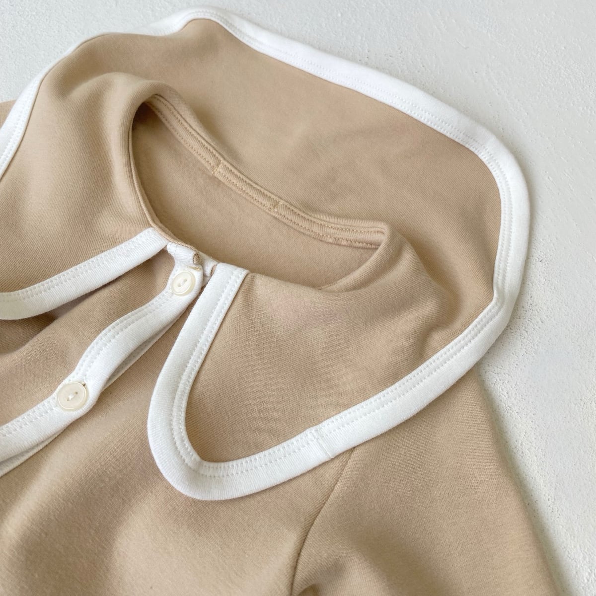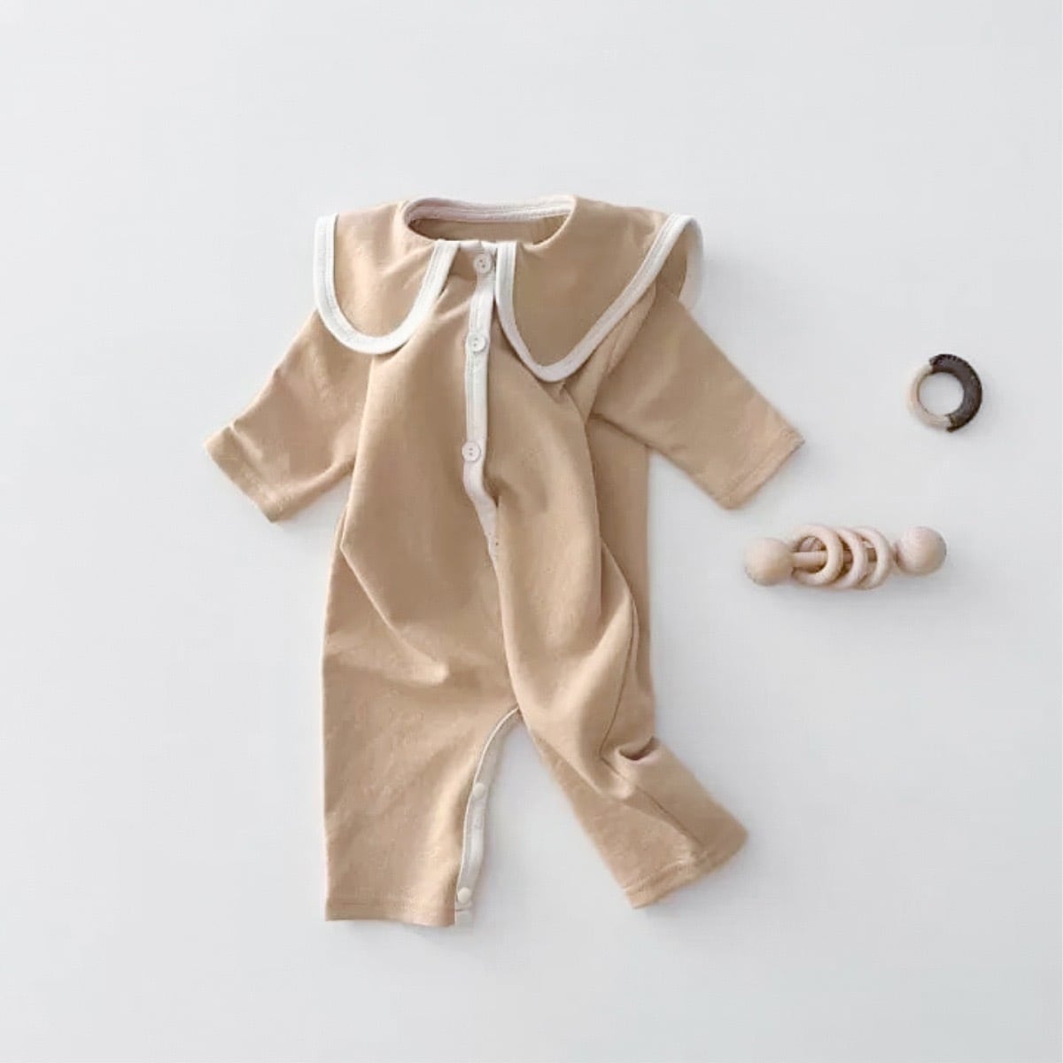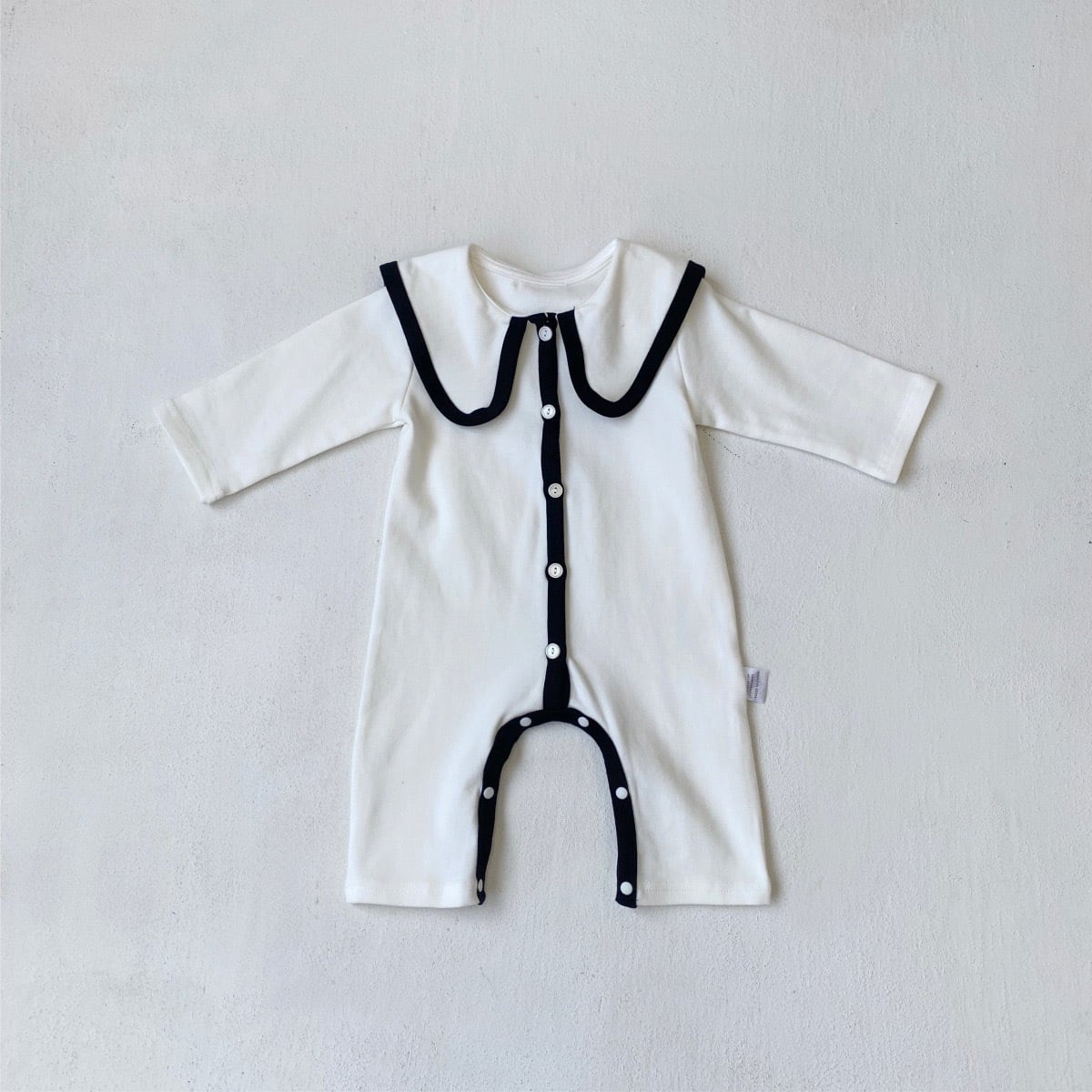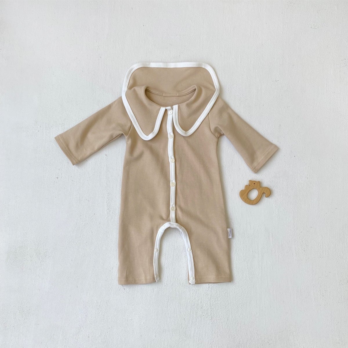 ,ビッグ襟がかわいい前開きバイカラーベビーカバーオール
