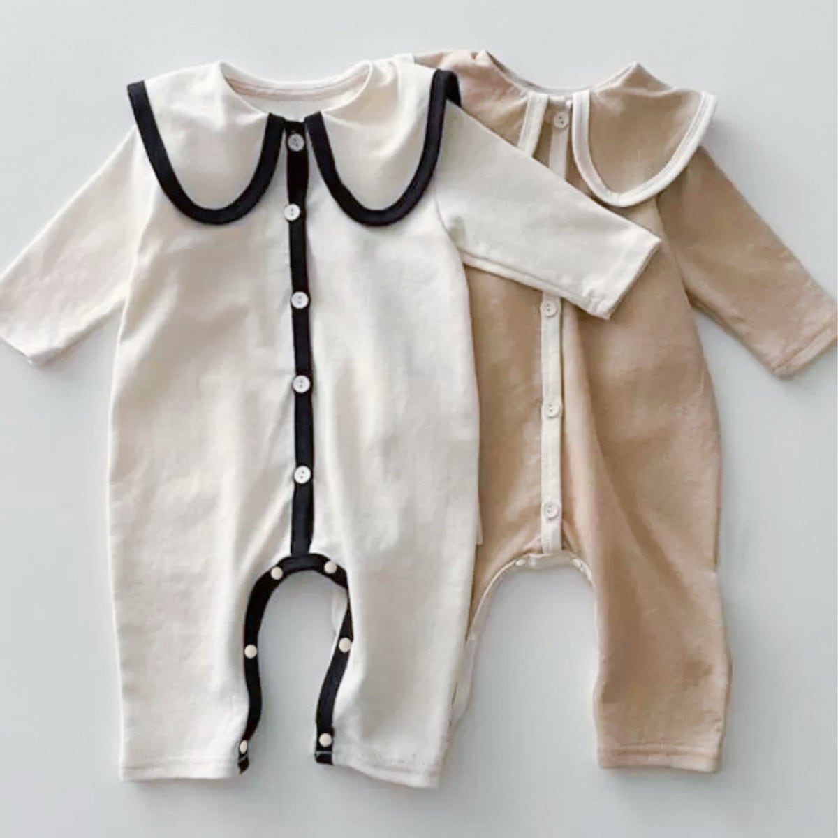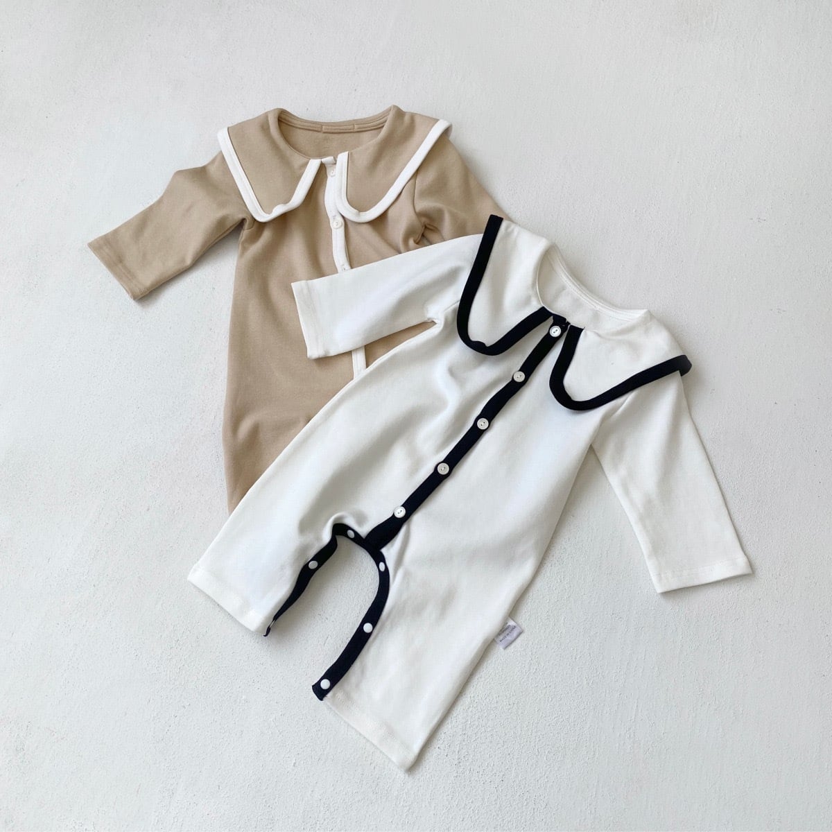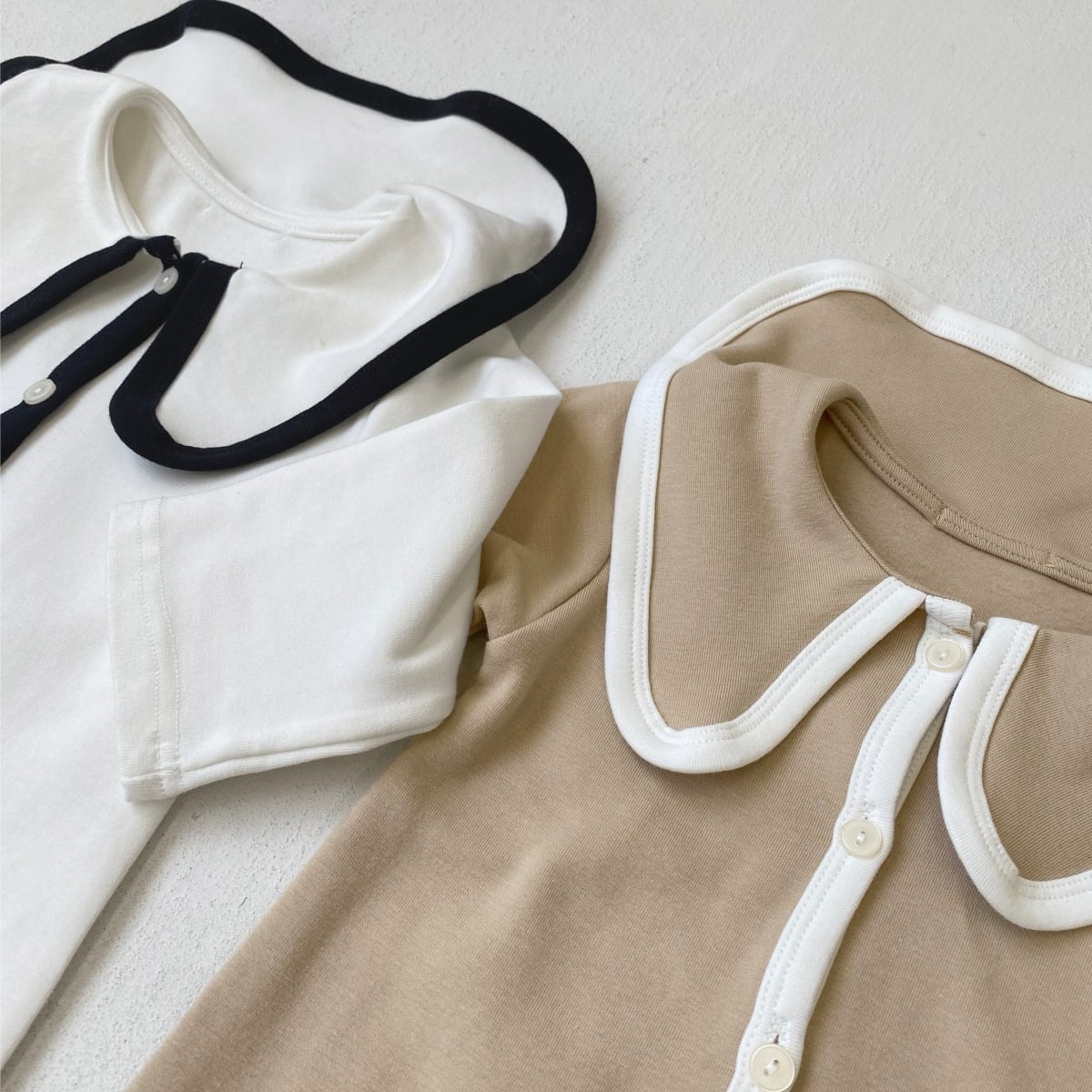 ,ビッグ襟がかわいい前開きバイカラーベビーカバーオール