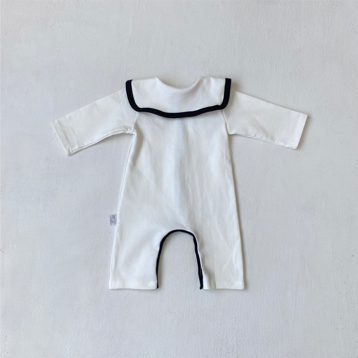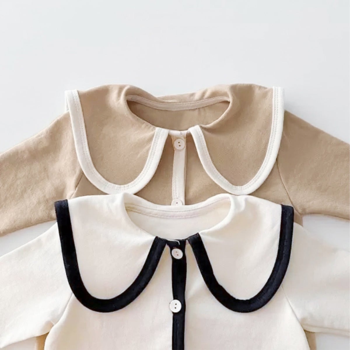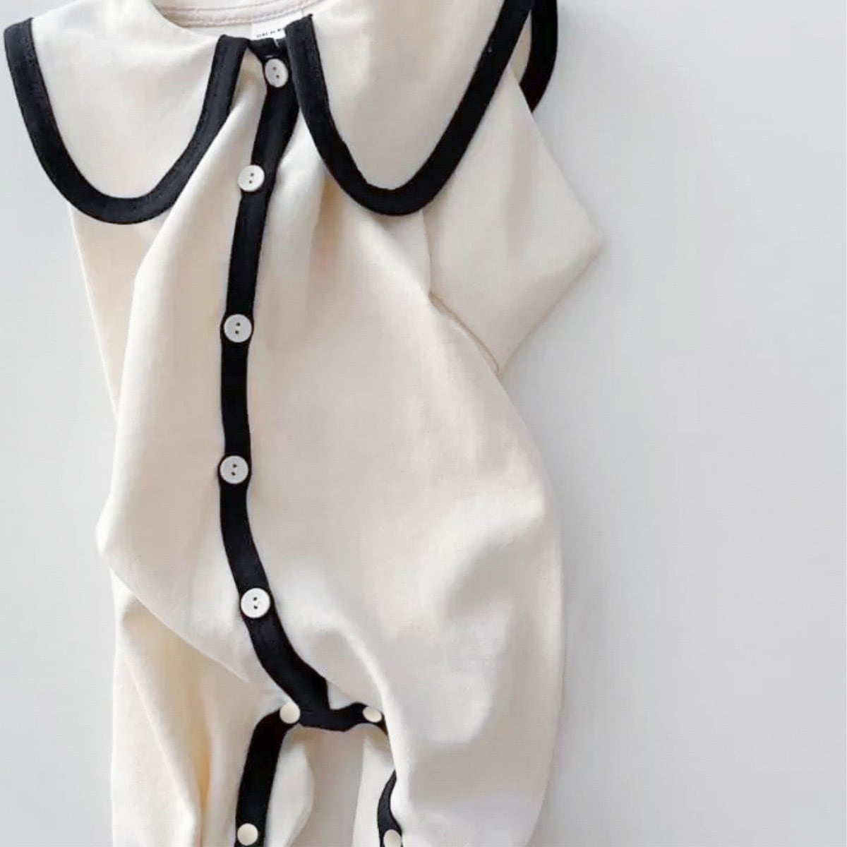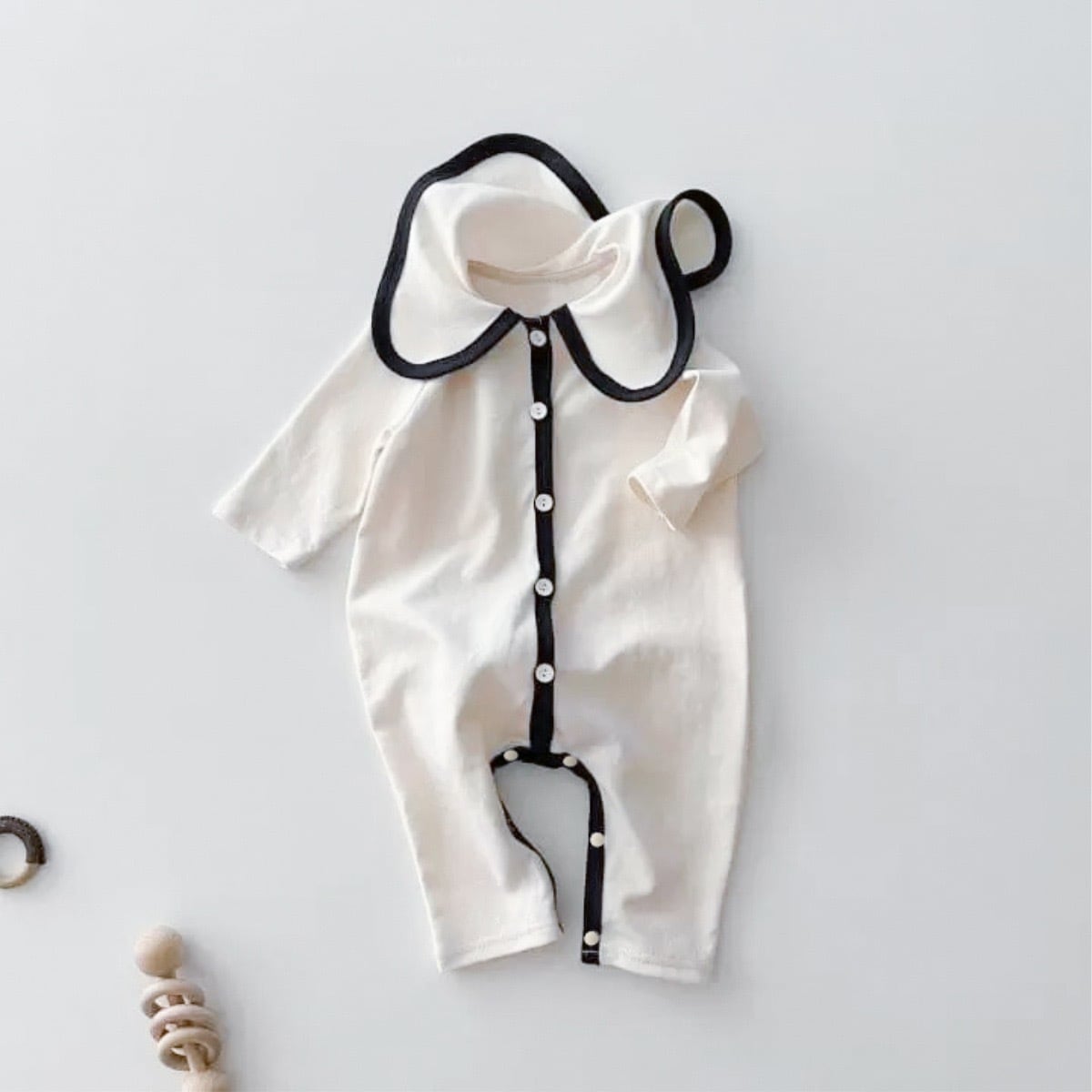 ,ビッグ襟がかわいい前開きバイカラーベビーカバーオール