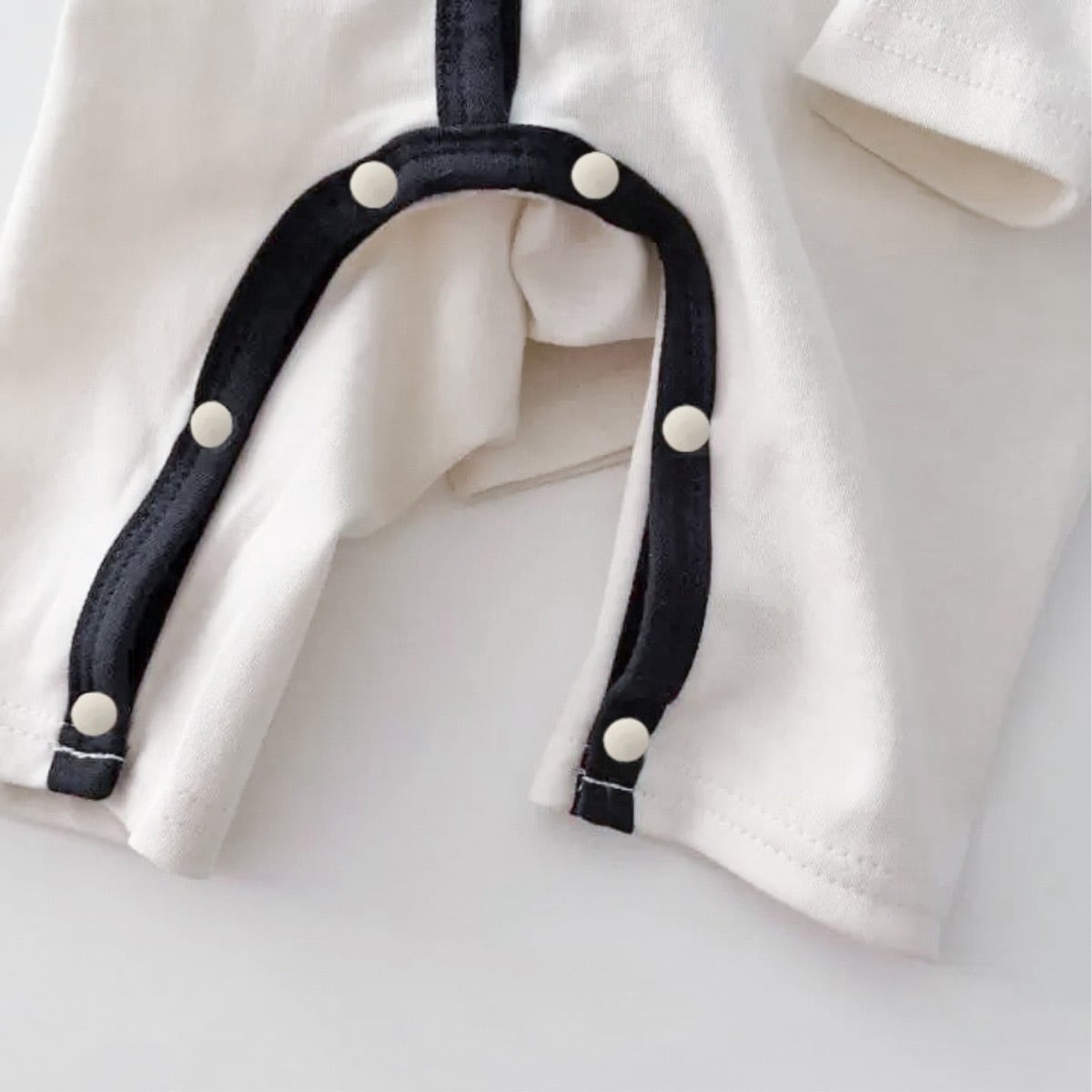 カバーオール仕様で季節の変わり目にも安心して着用でき、前面はボタン付きのためお着替えやおむつ替えもスムーズ。