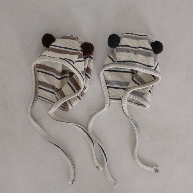 帽子も本体と同じ柄で、トップにはふわふわのポンポンが2つ付いており、赤ちゃんの可愛さをより一層引き立てます。
