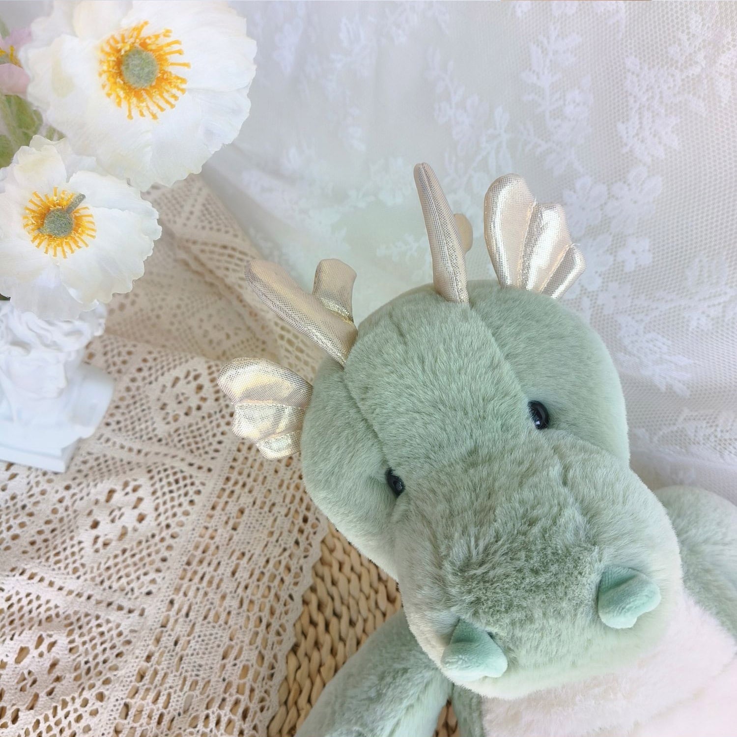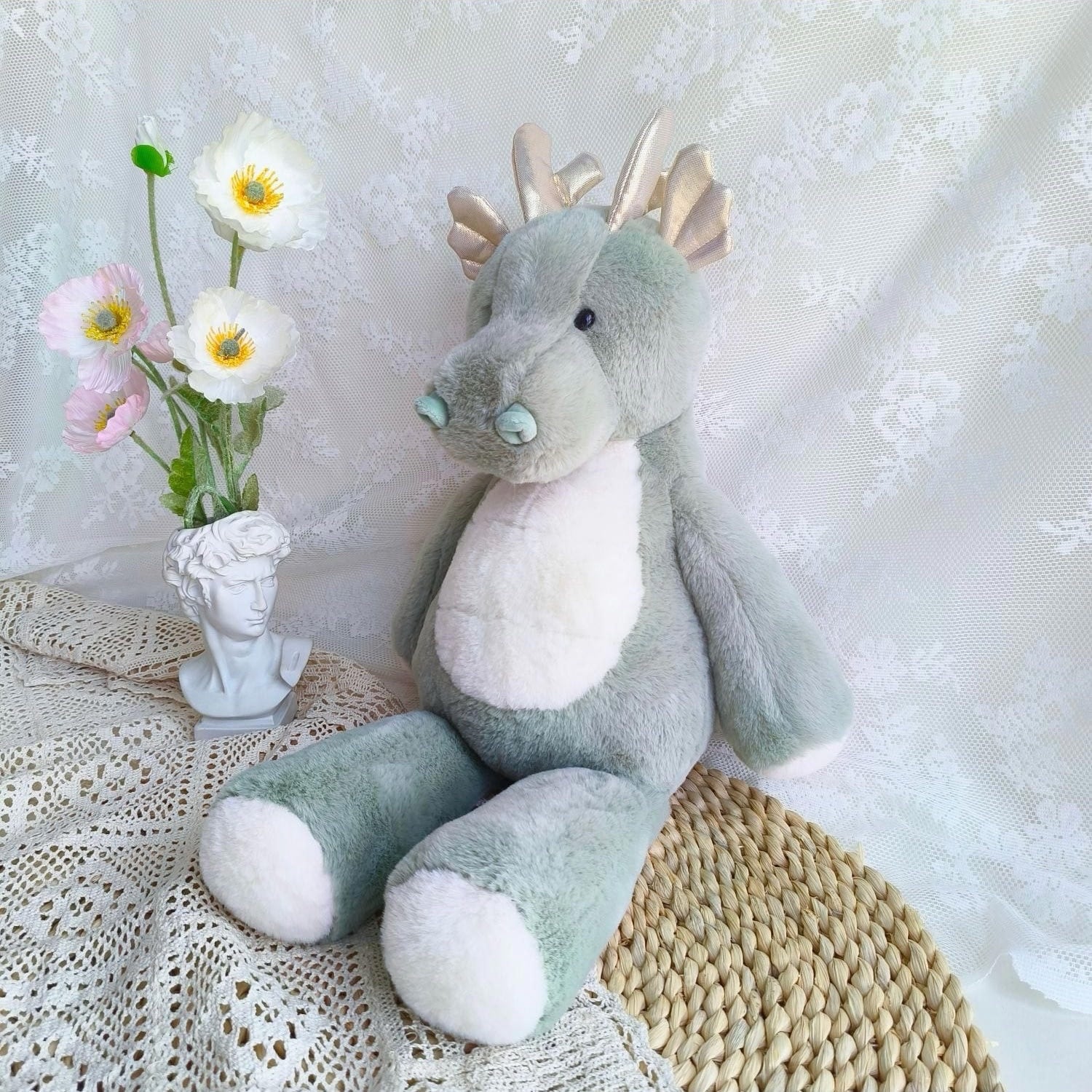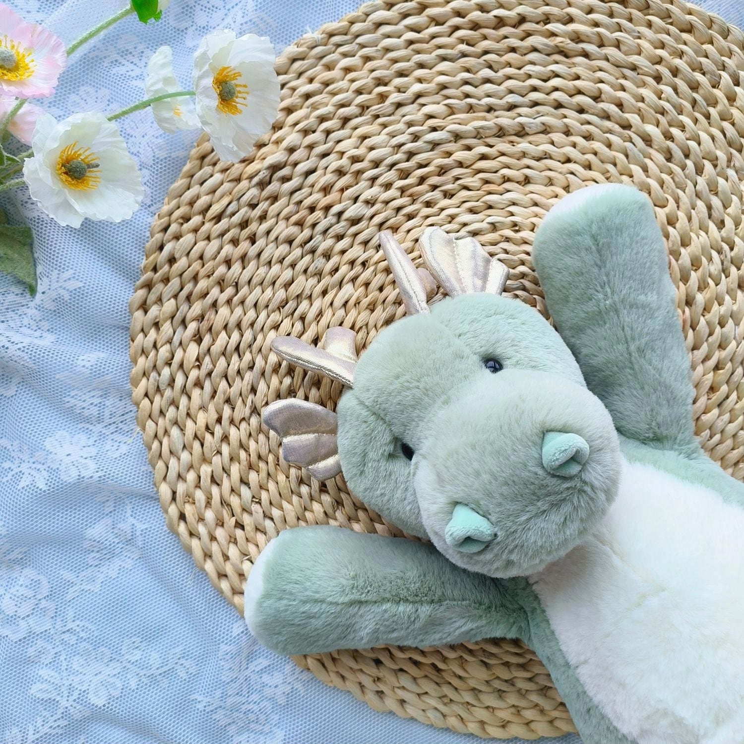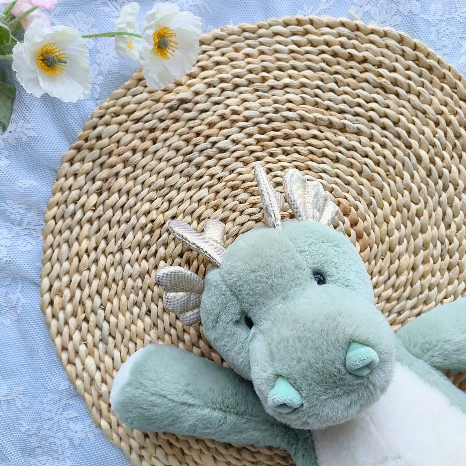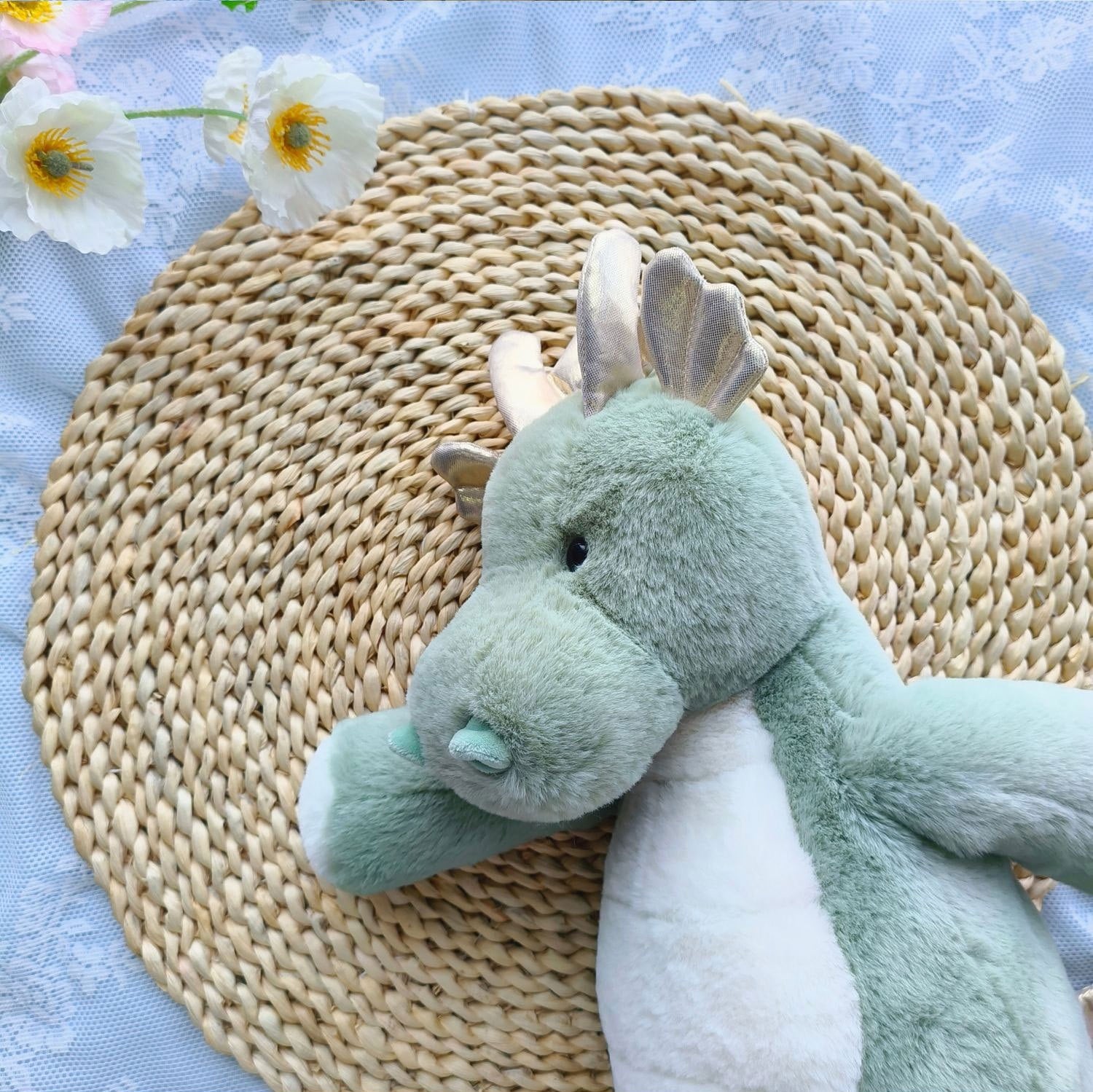 ,グリーンのふわもこ癒し系可愛い恐竜ぬいぐるみ(40cm)