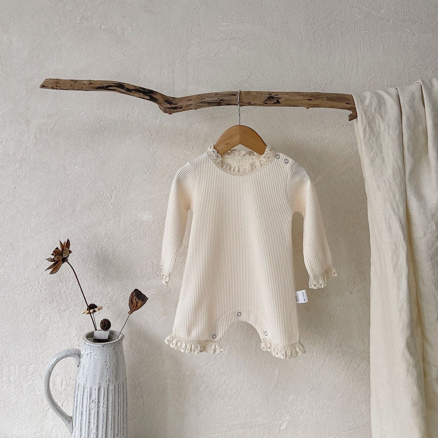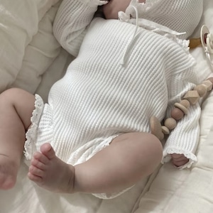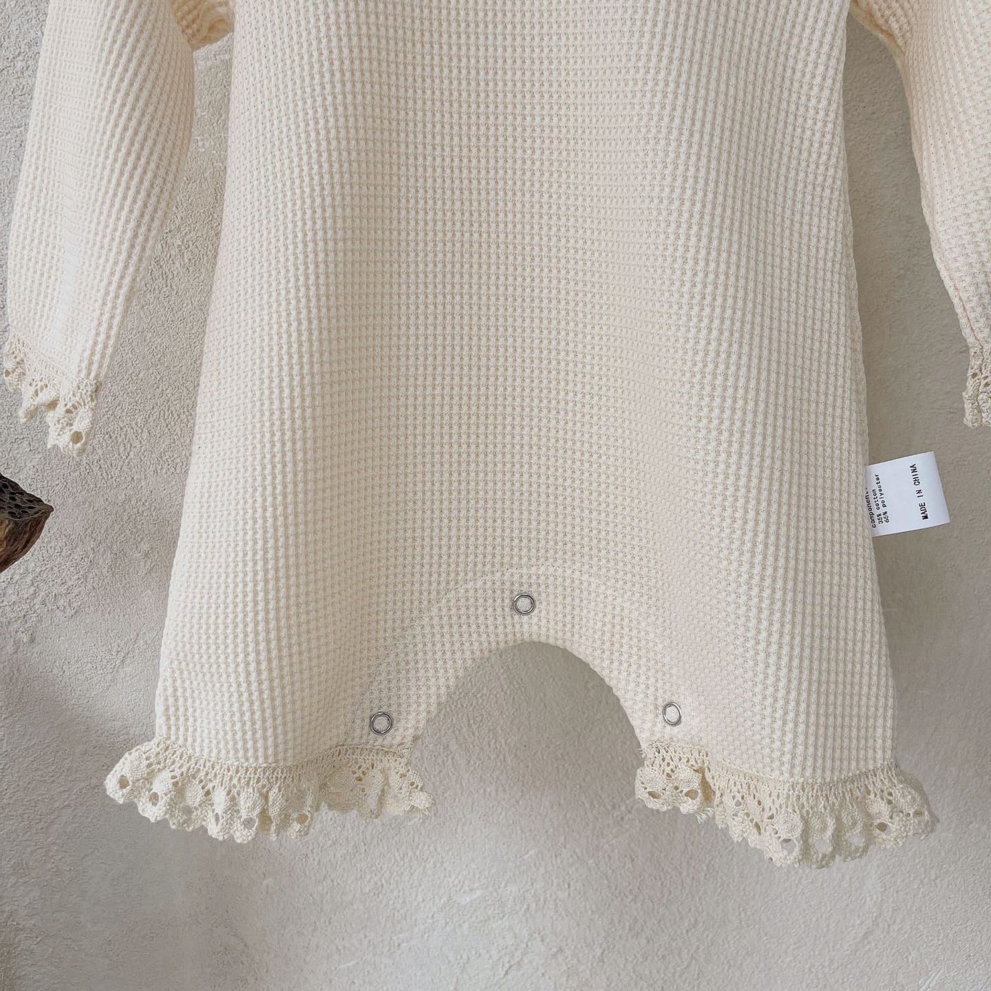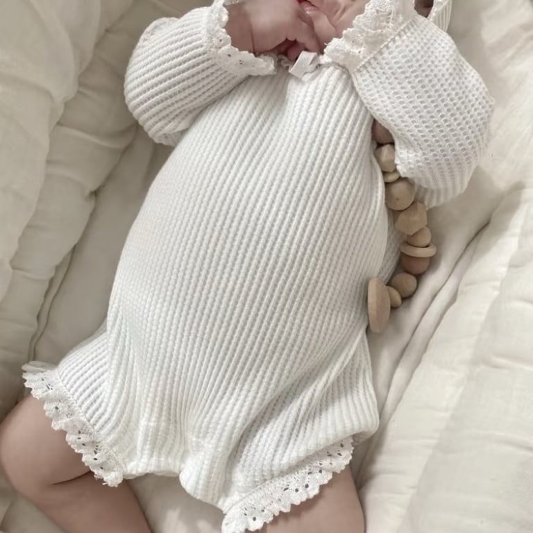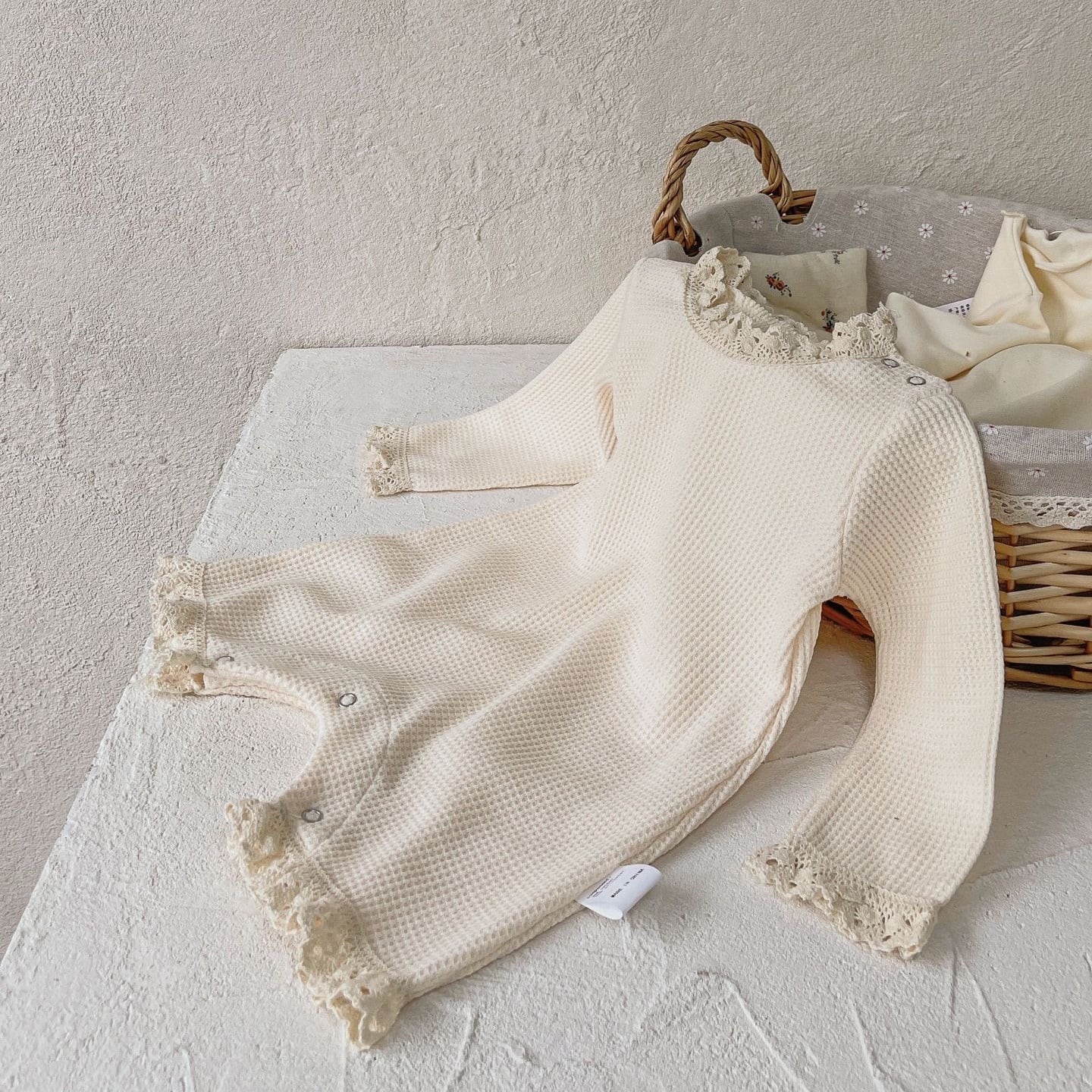 ,フリルが愛らしいワッフルロンパース(ボンネット付き)