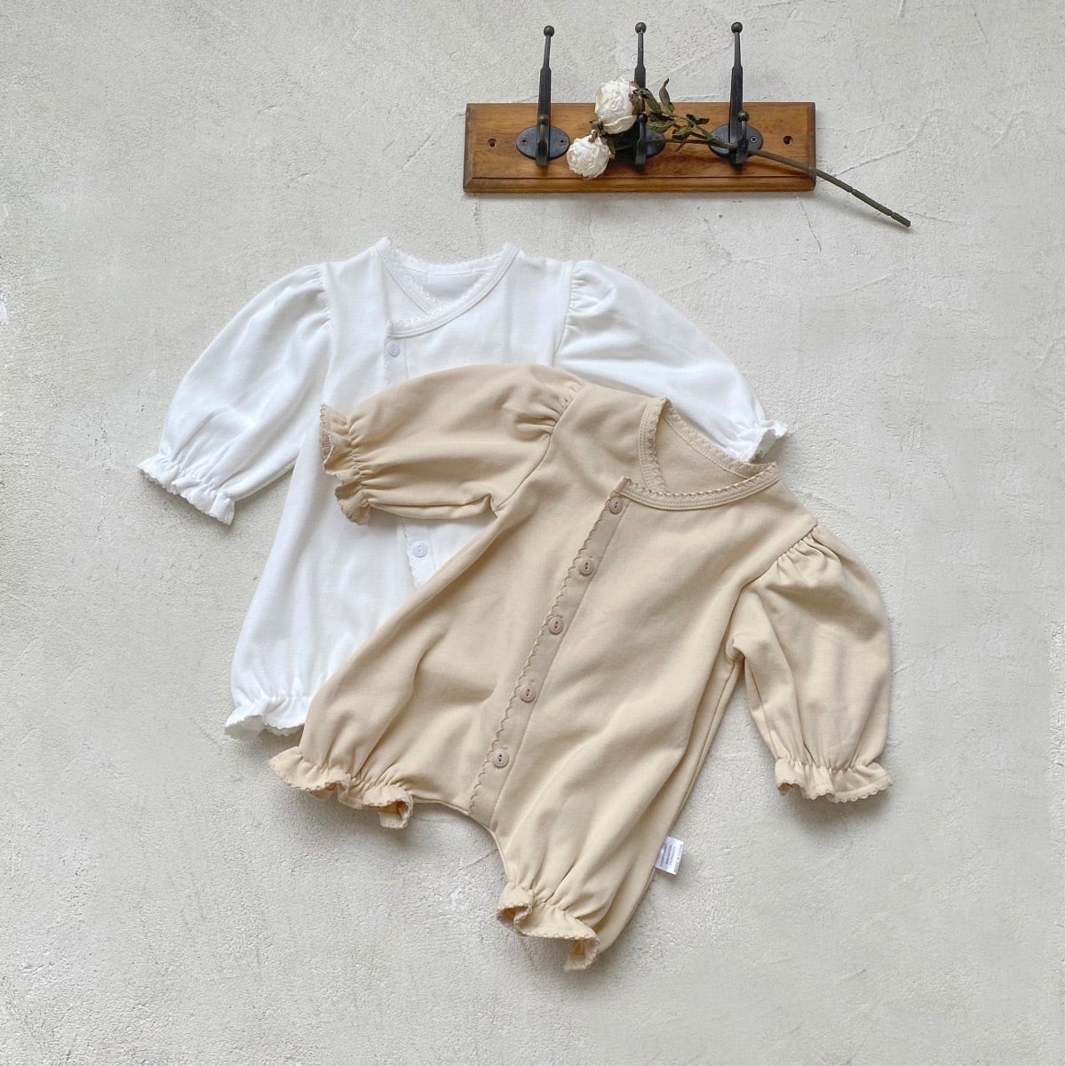 こちらは赤ちゃんの可愛さを最大限に引き出すロンパースです。