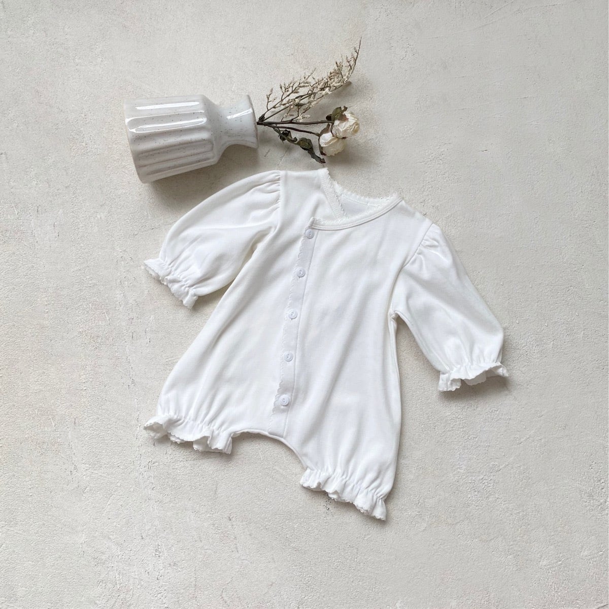,前開きで着せやすい フリル袖の新生児コットンロンパース