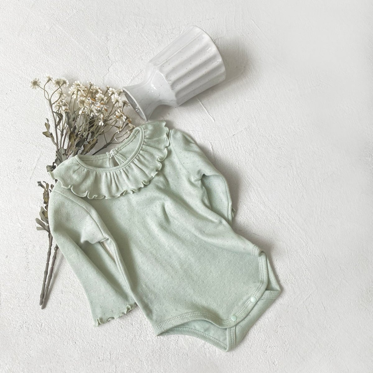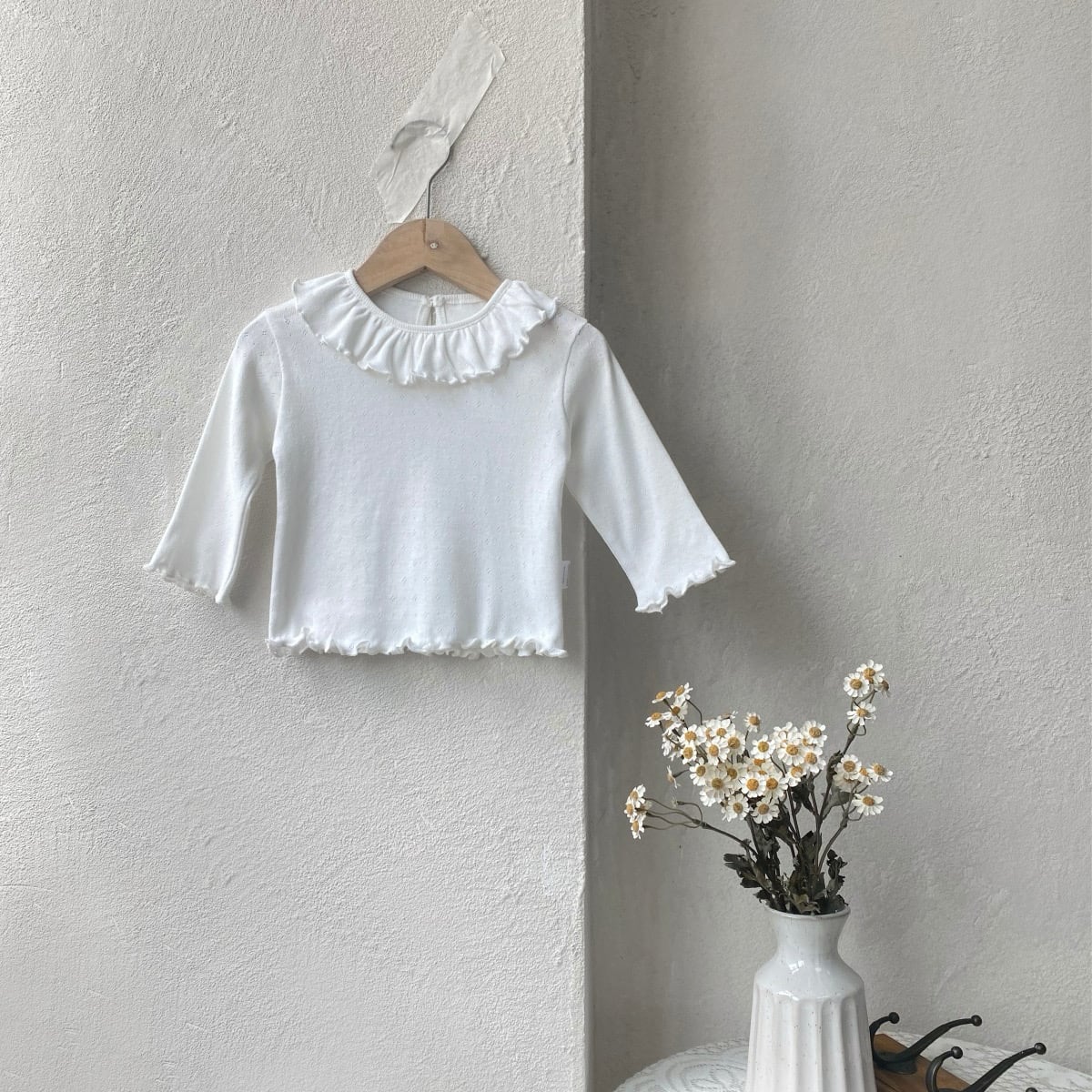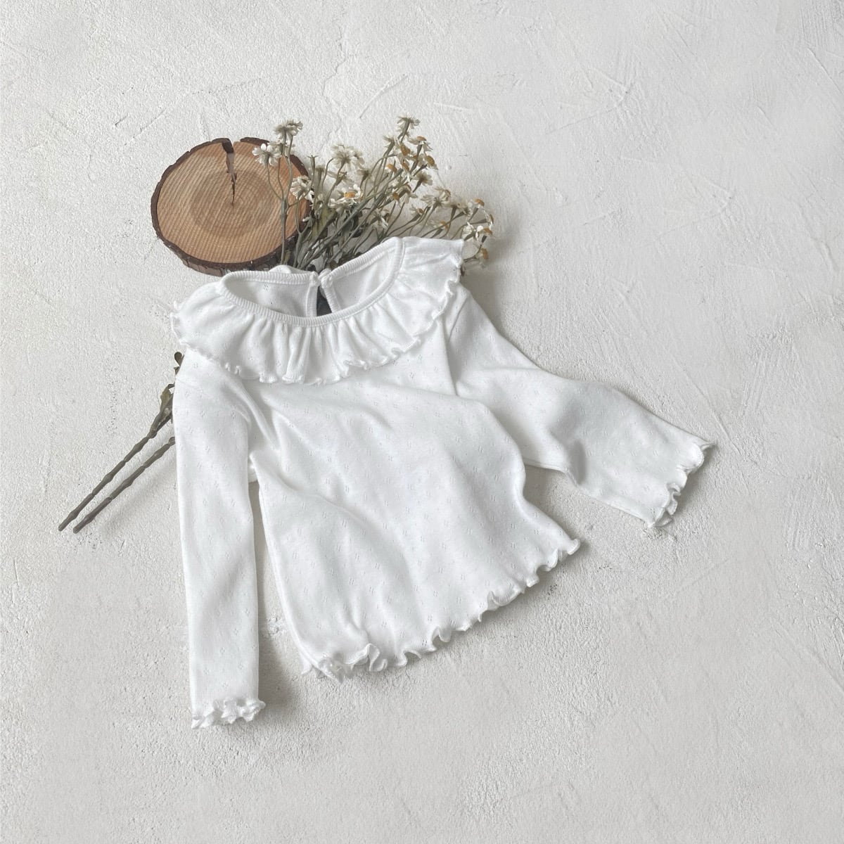 首元にふんわりフリルをあしらったデザインが可愛さを格上げし、シンプルながらもおしゃれな印象を与えてくれます。